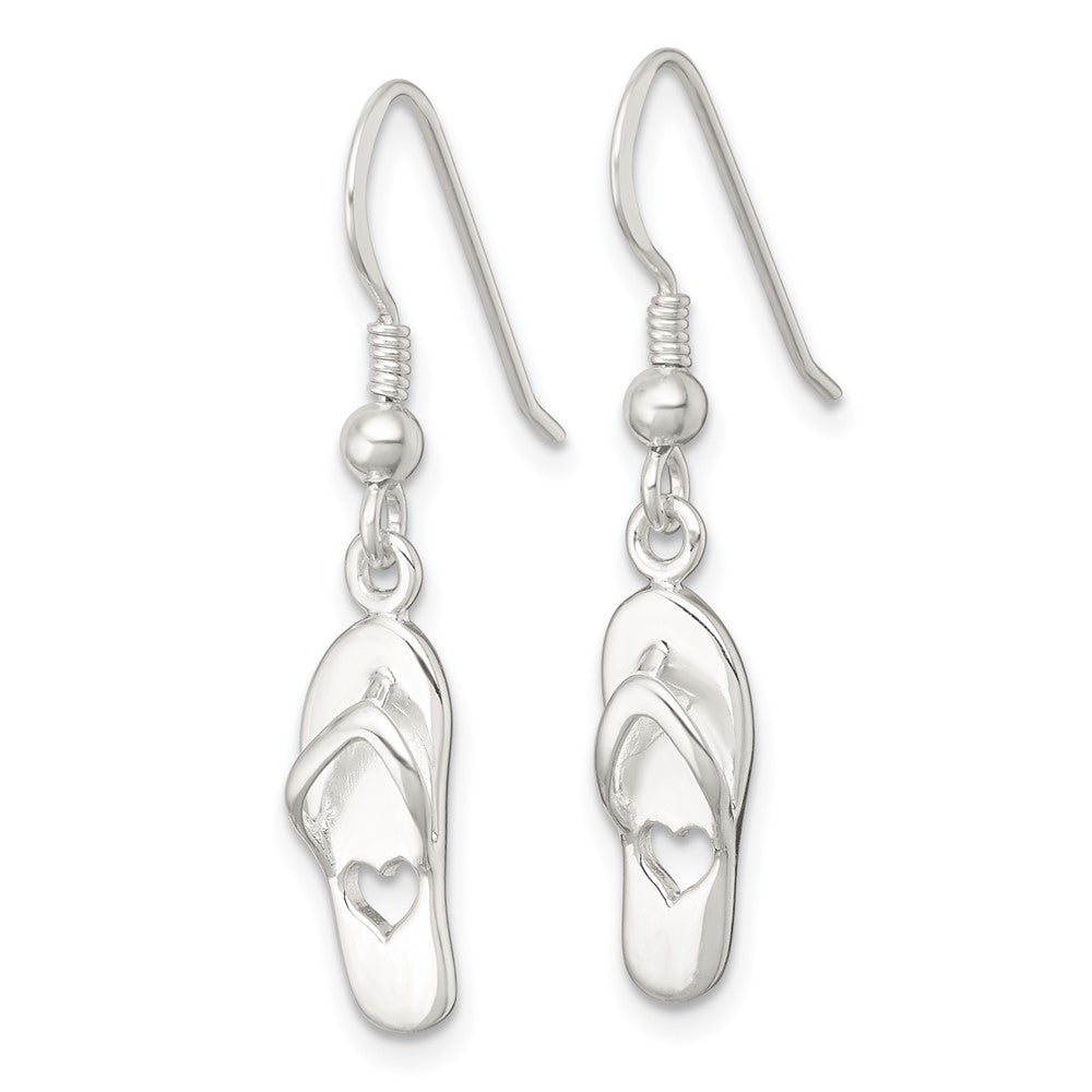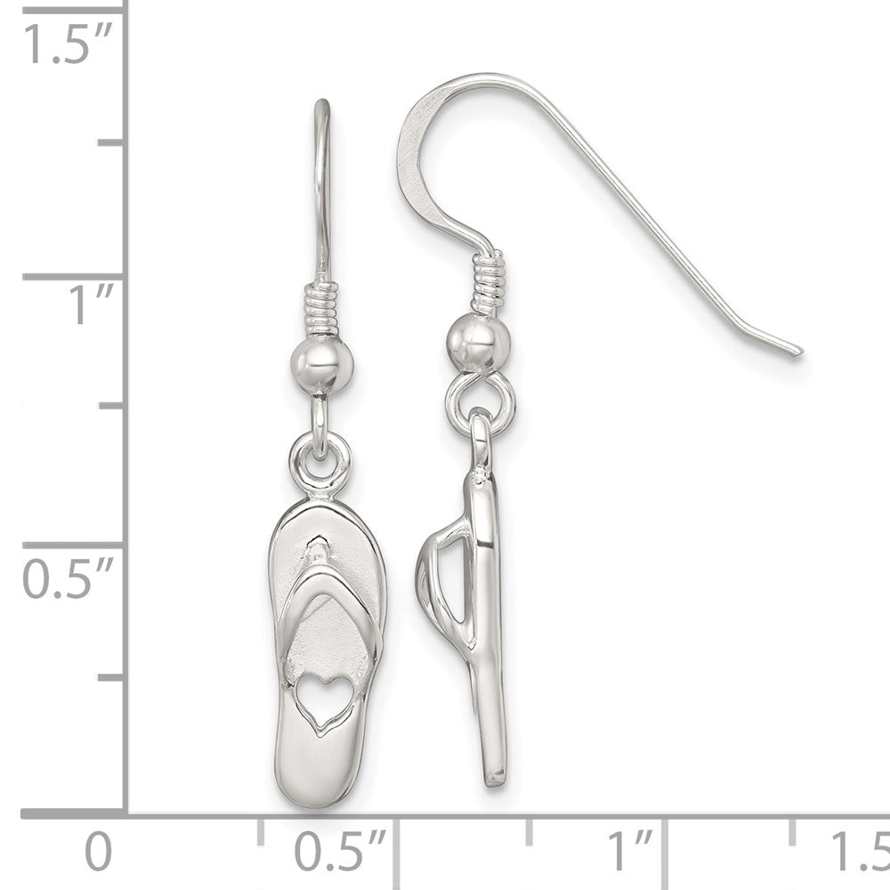 Sterling Silver Polished Cut-out Heart Flip-Flop Dangle Earrings