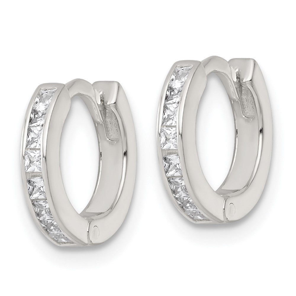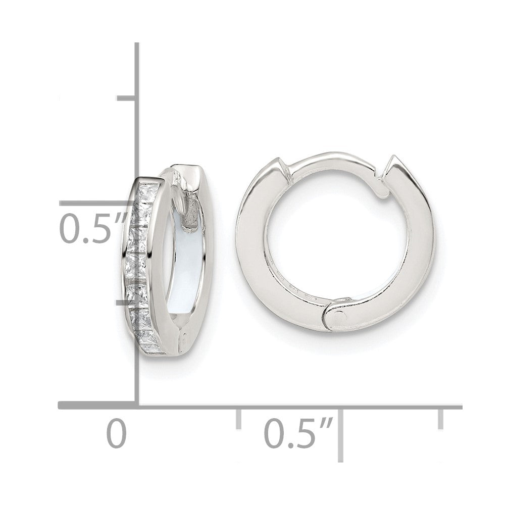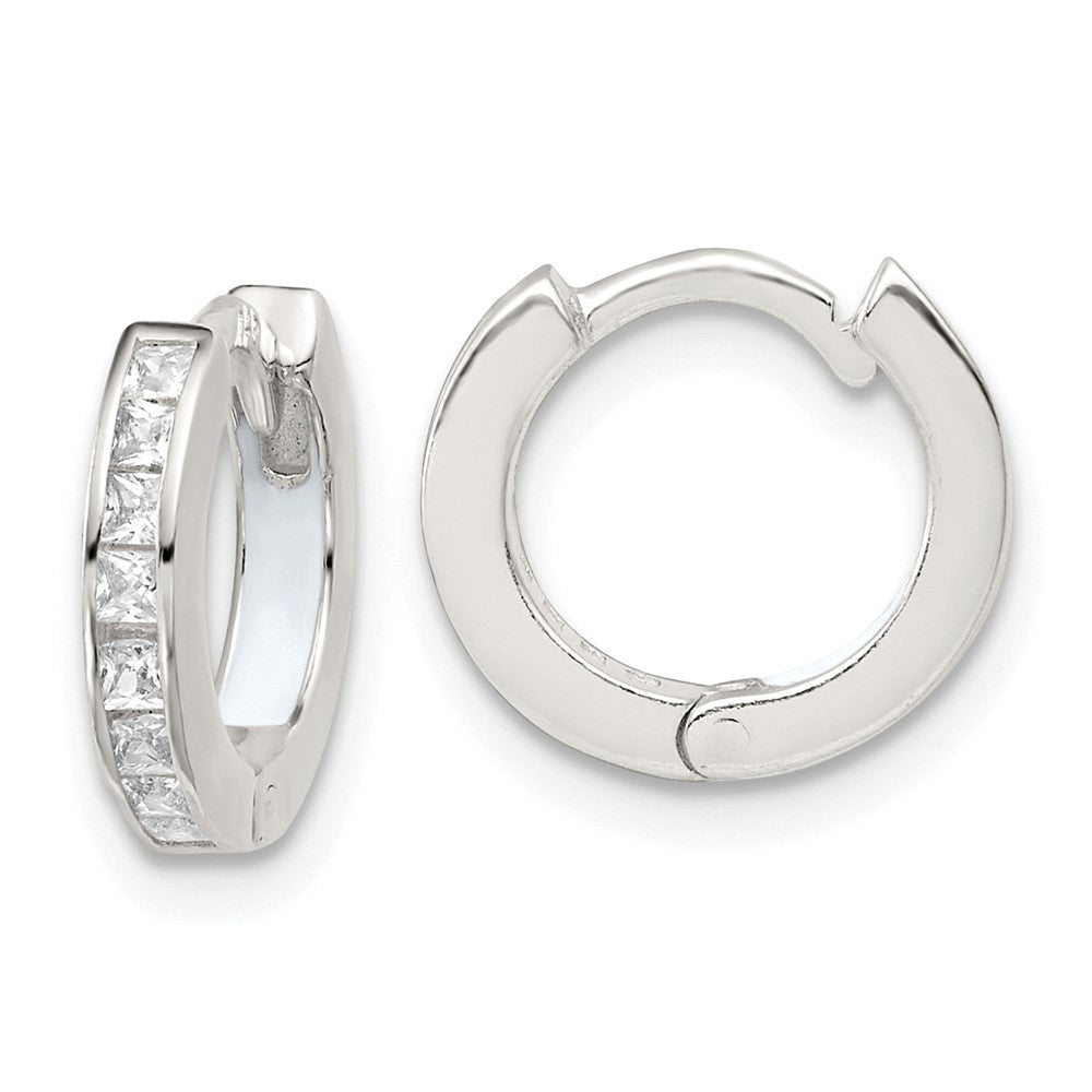 Sterling Silver Polished CZ and White Enamel In and Out Hinged Round Hoop Earrings