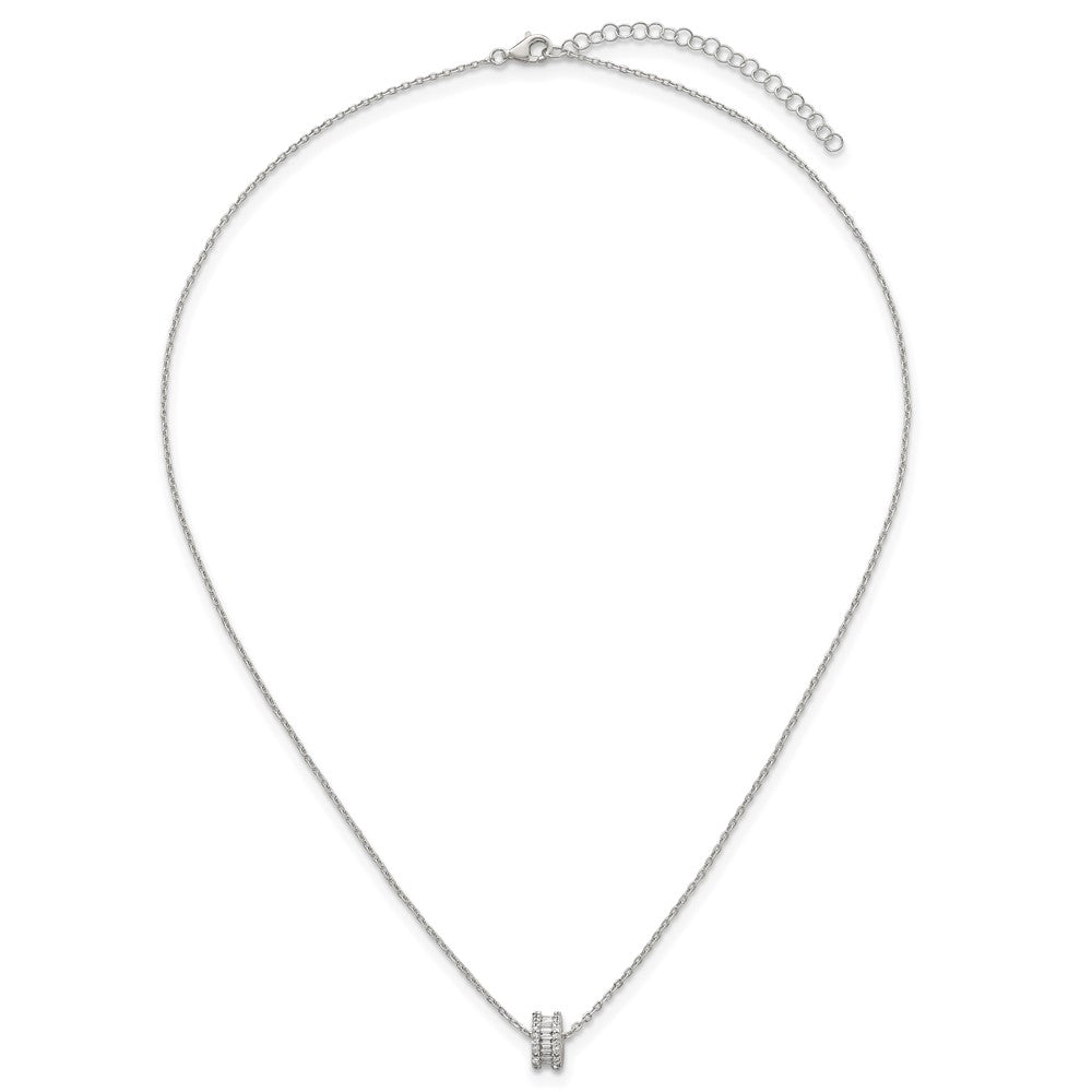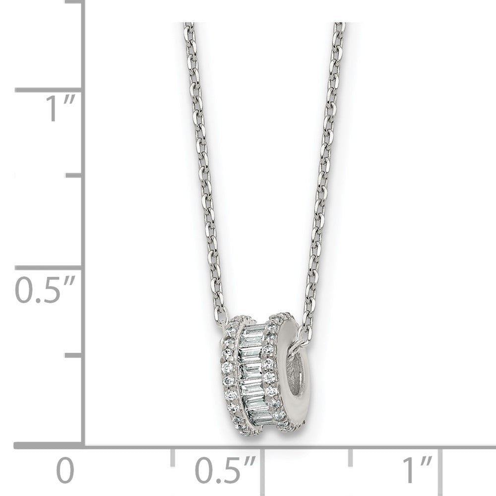 Sterling Silver Polished CZ Circle Bead with Extension Necklace