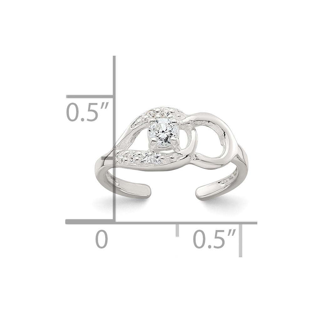 Sterling Silver Polished CZ Fancy Toe Ring
