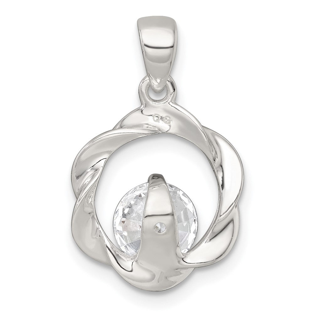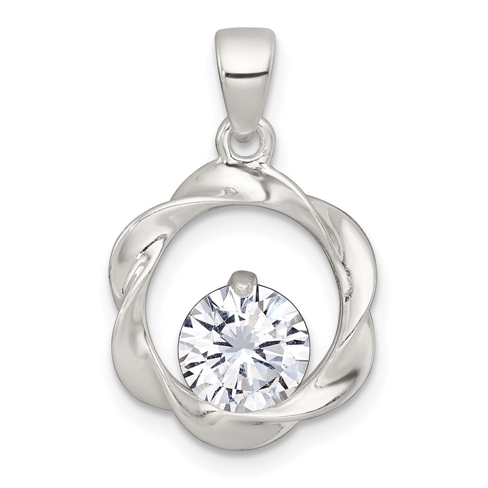 Sterling Silver Polished CZ in Twisted Circle Pendant