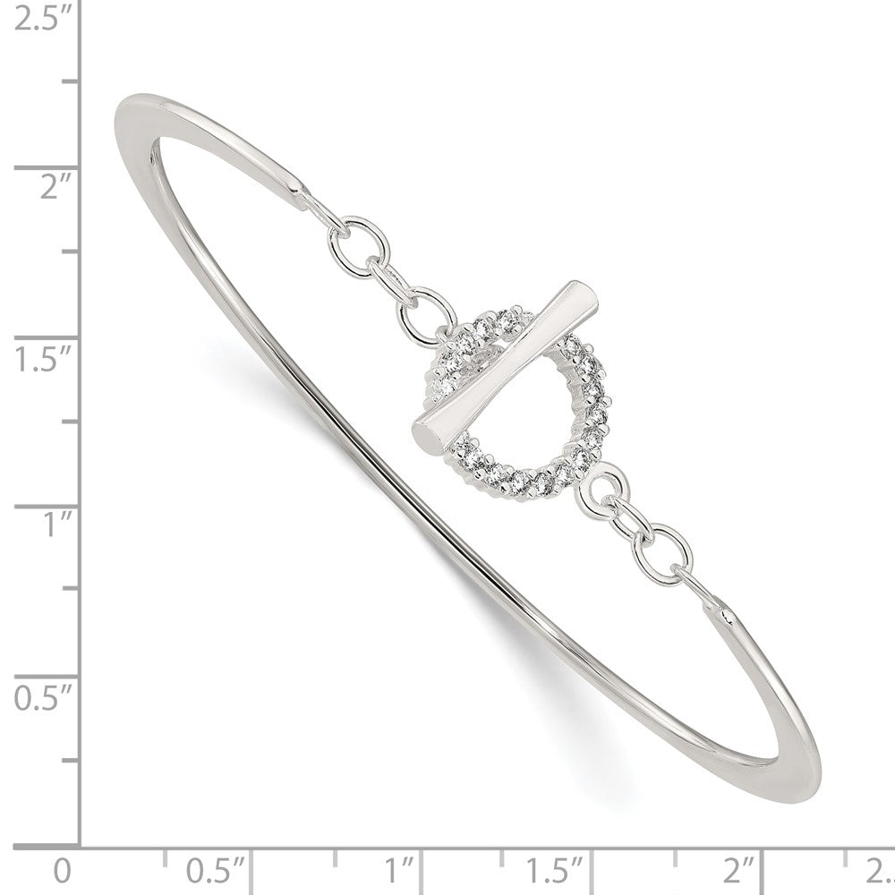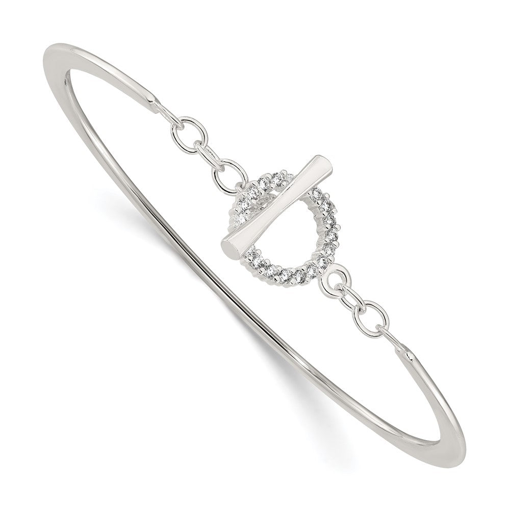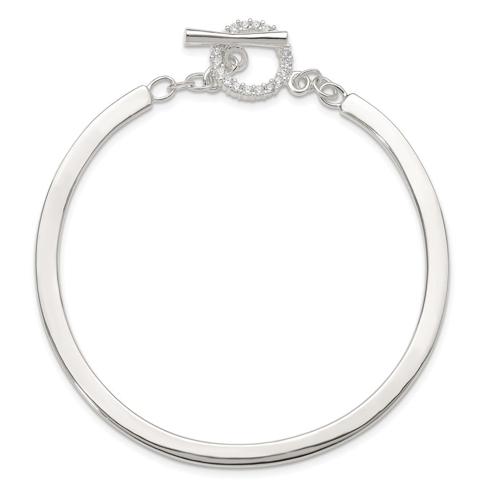 Sterling Silver Polished CZ Toggle Clasp Bangle Bracelet