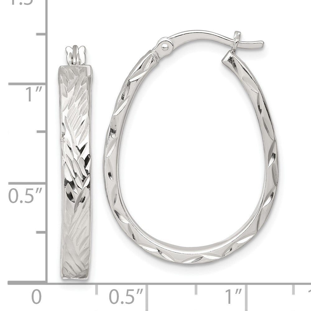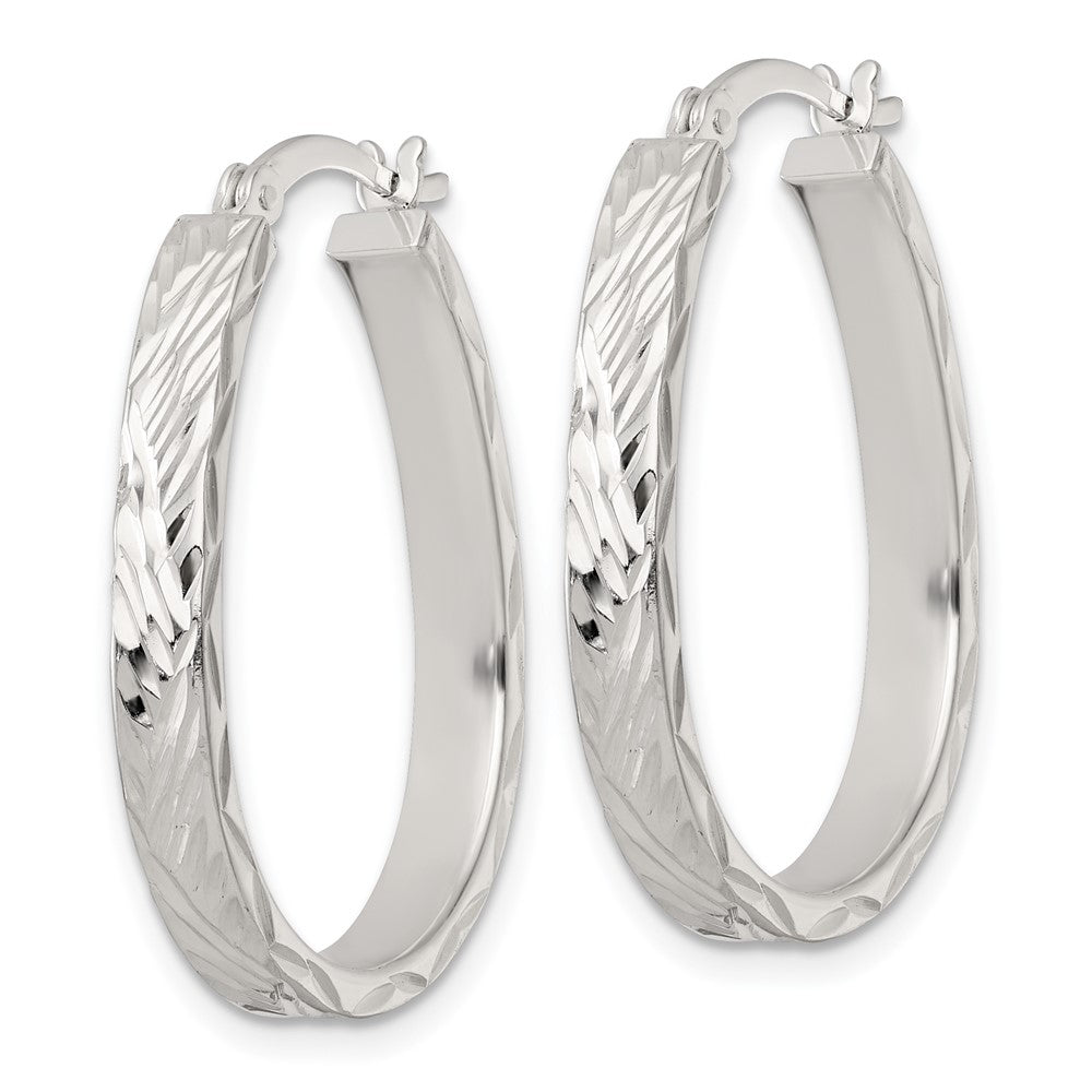 Sterling Silver Polished Diamond-cut Oval Hoop Earrings