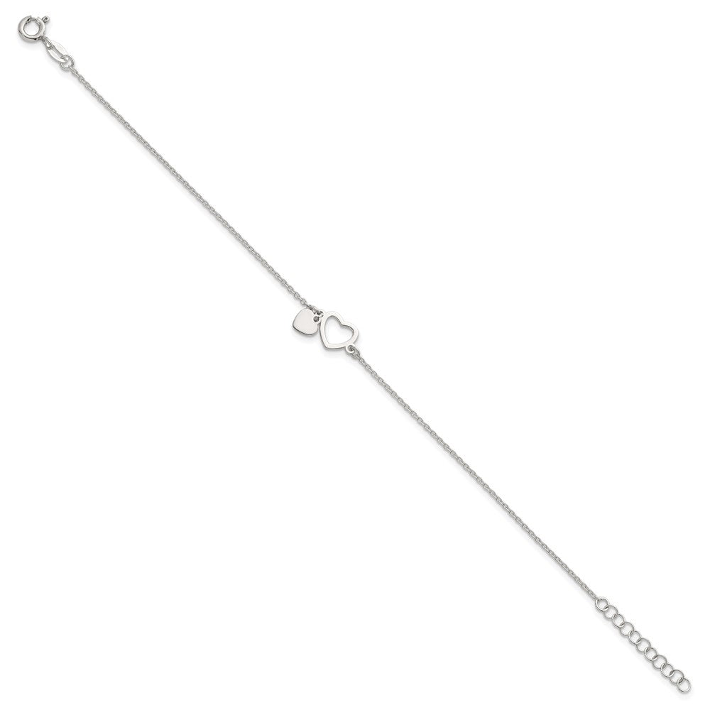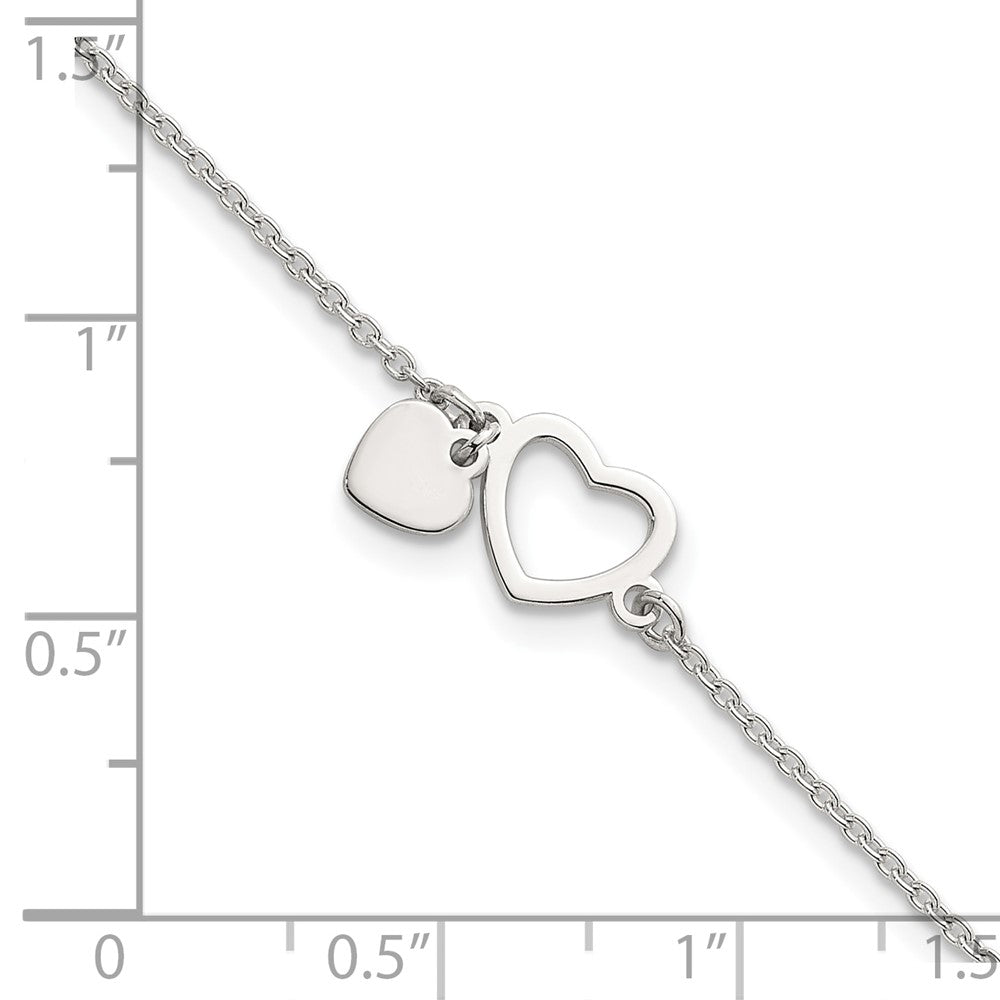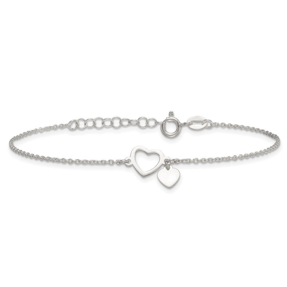 Sterling Silver Polished Double Heart with Extension Bracelet