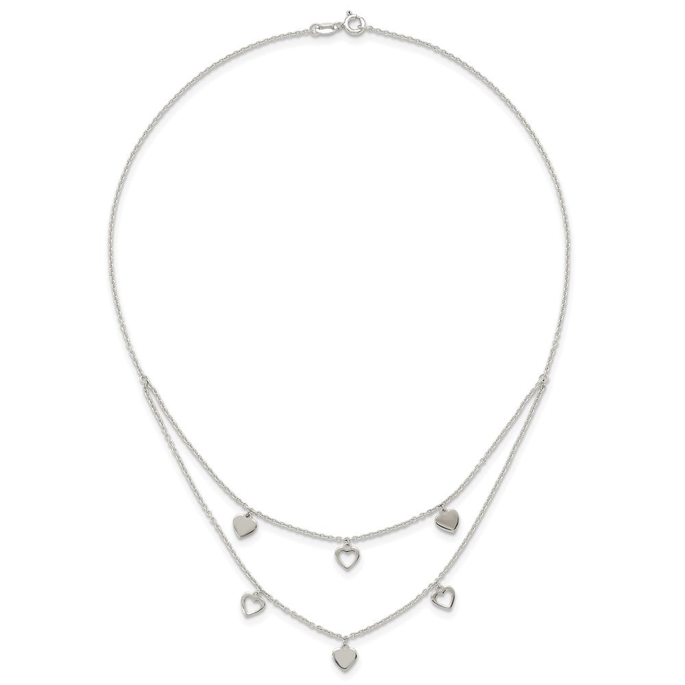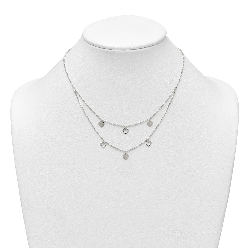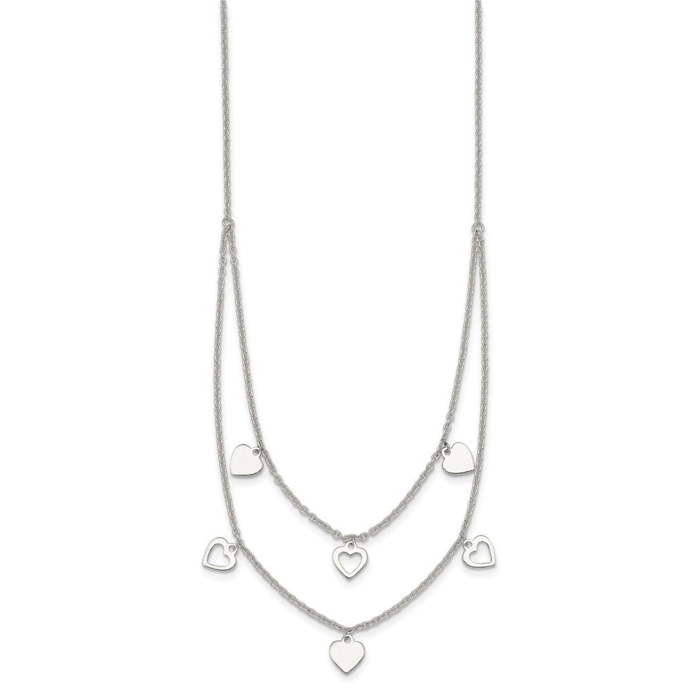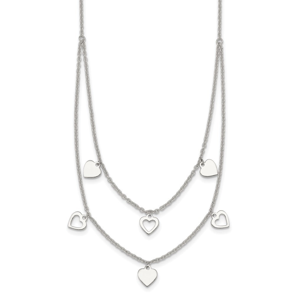 Sterling Silver Polished Double Strand Heart Station 15. Necklace