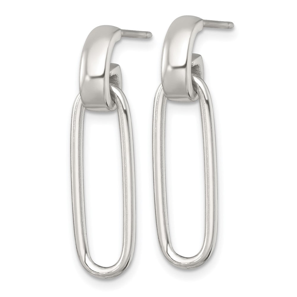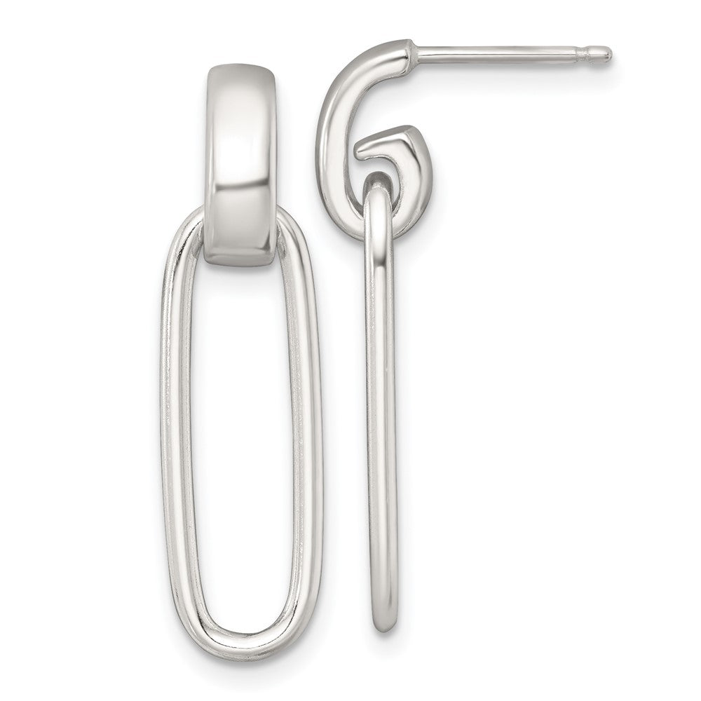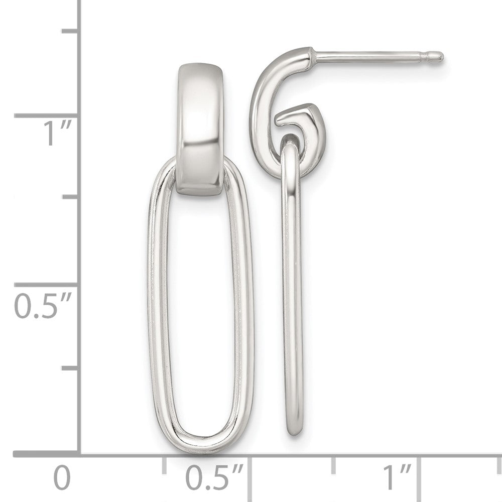 Sterling Silver Polished Elongated Oval Dangle Post Earrings
