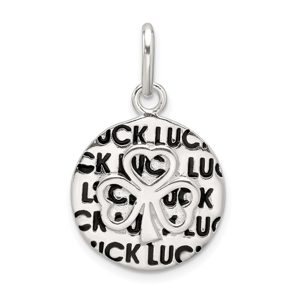 Sterling Silver Polished Enamel Luck with Clover Round Pendant