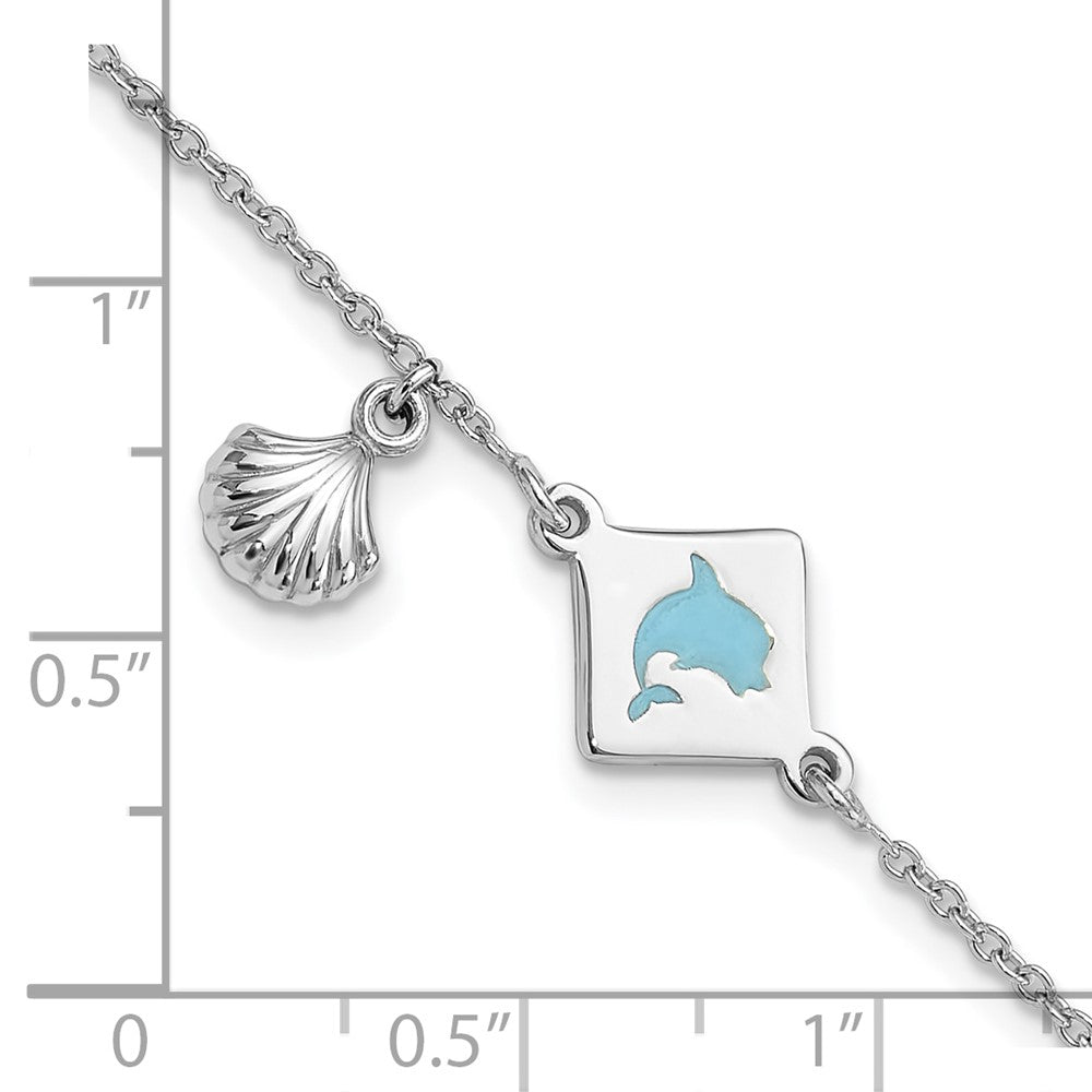 Sterling Silver Polished Enameled Dolphin Seashell Children's 6in Bracelet