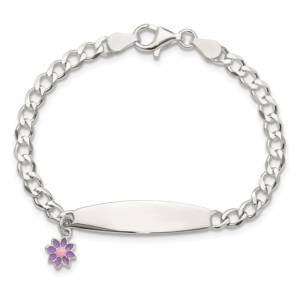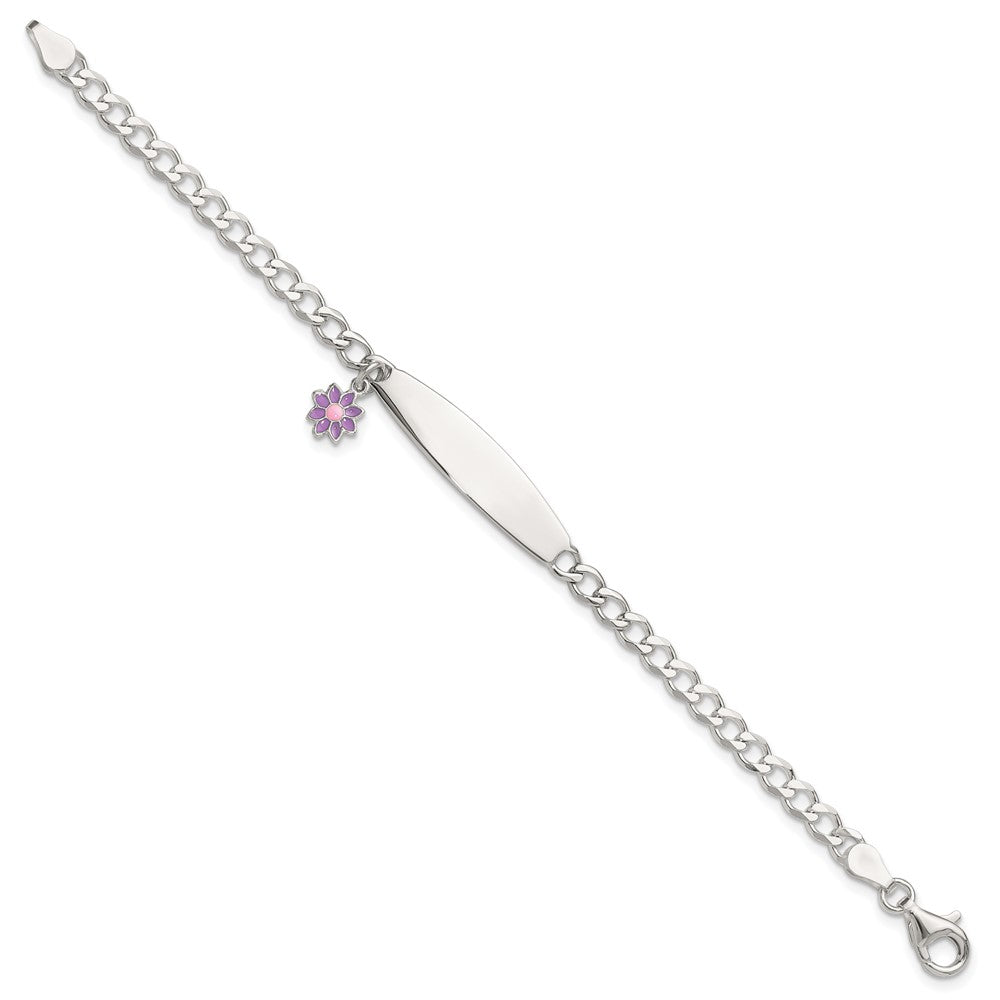 Sterling Silver Polished Enameled Flower Children's ID Bracelet