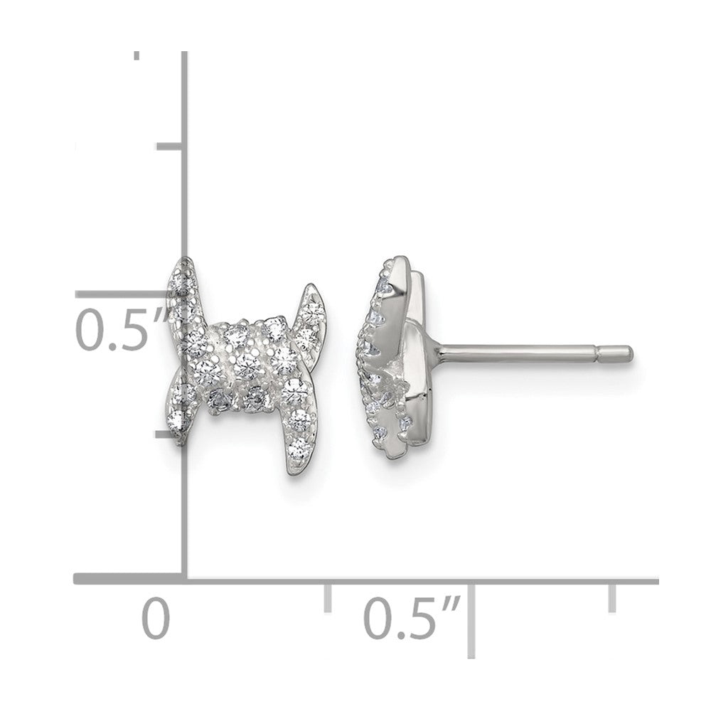 Sterling Silver Polished Fancy Ribbon CZ Post Earrings