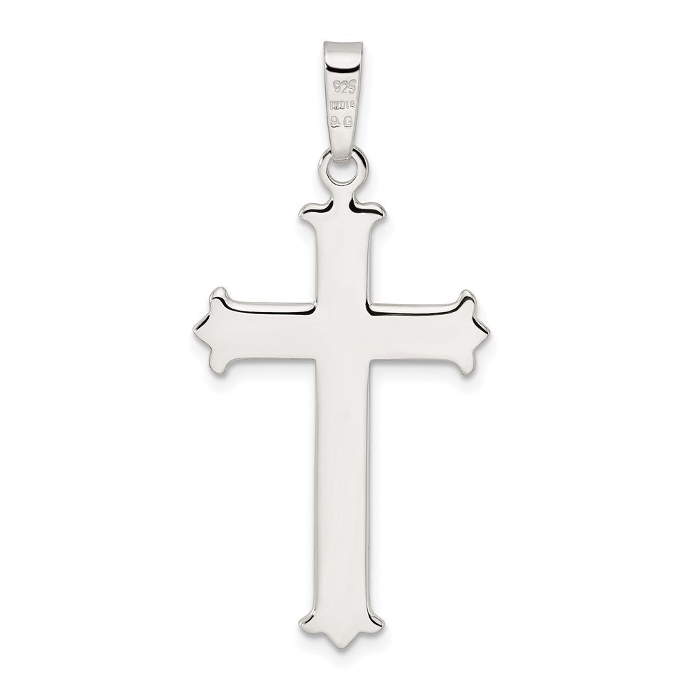 Sterling Silver Polished Fleur de Lis Cross w/Cross Center Pendant
