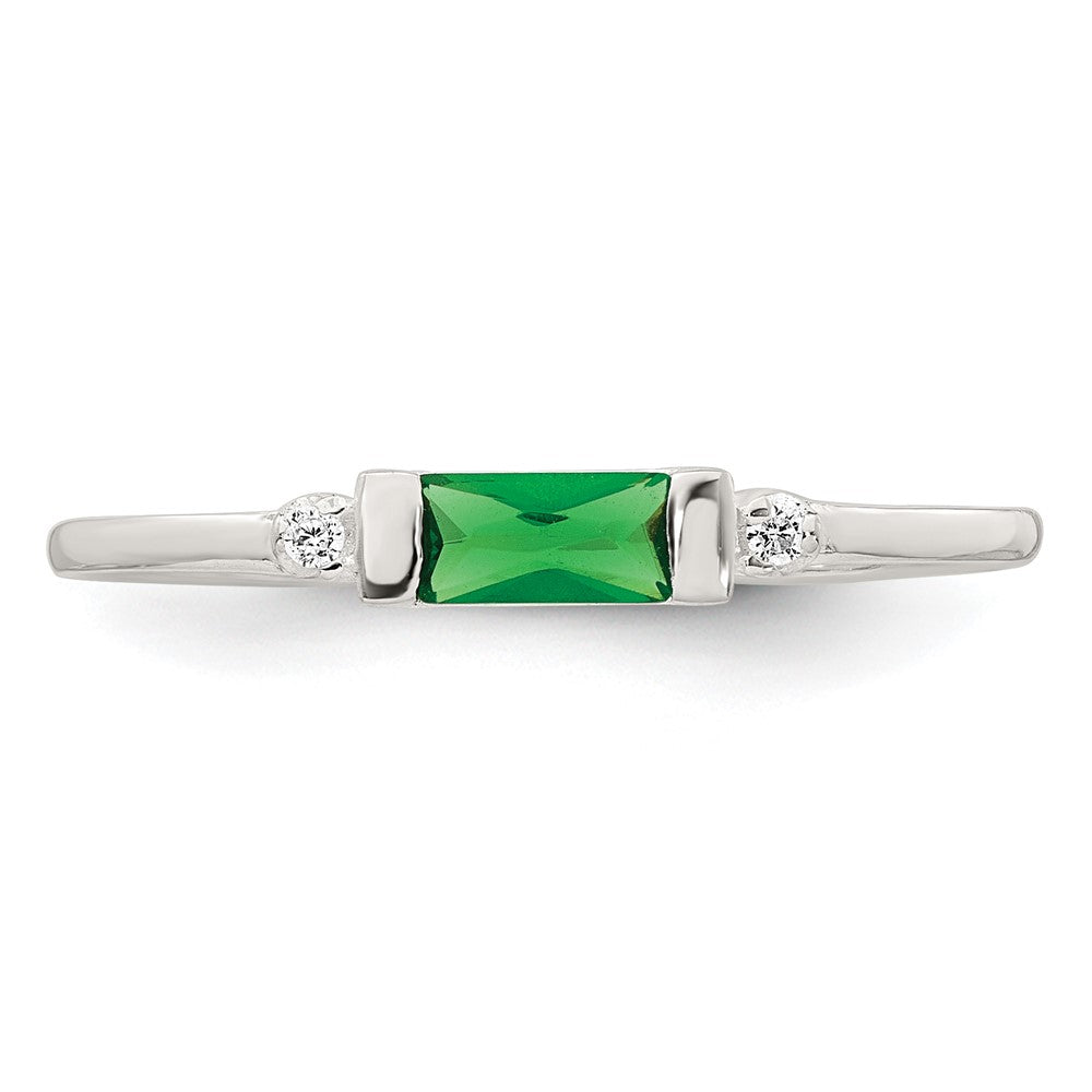 Sterling Silver Polished Green and White Rectangular CZ Size 6 Ring