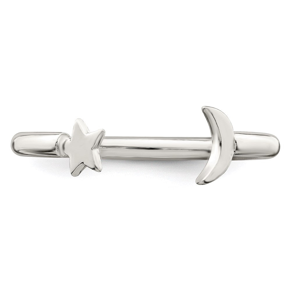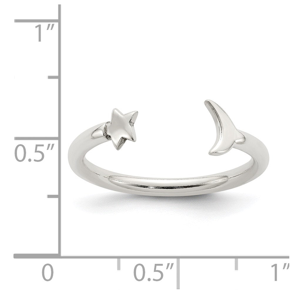 Sterling Silver Polished Half Moon and Star Adjustable Ring