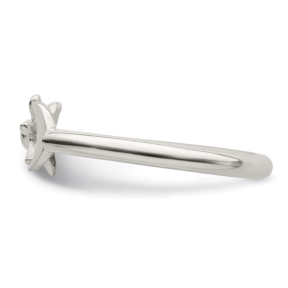 Sterling Silver Polished Half Moon and Sun Orange CZ Adjustable Ring