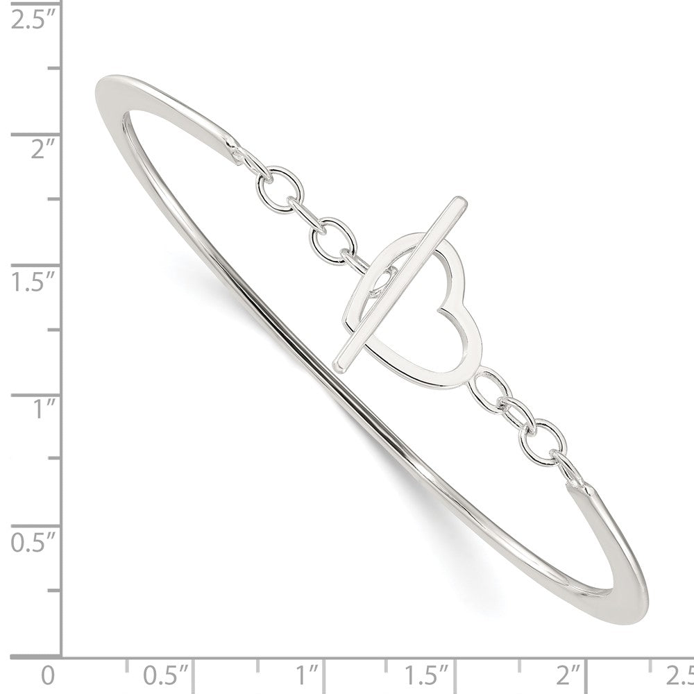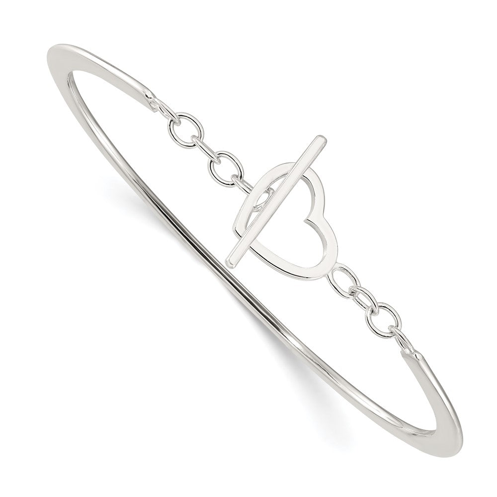 Sterling Silver Polished Heart Toggle Clasp Bangle Bracelet
