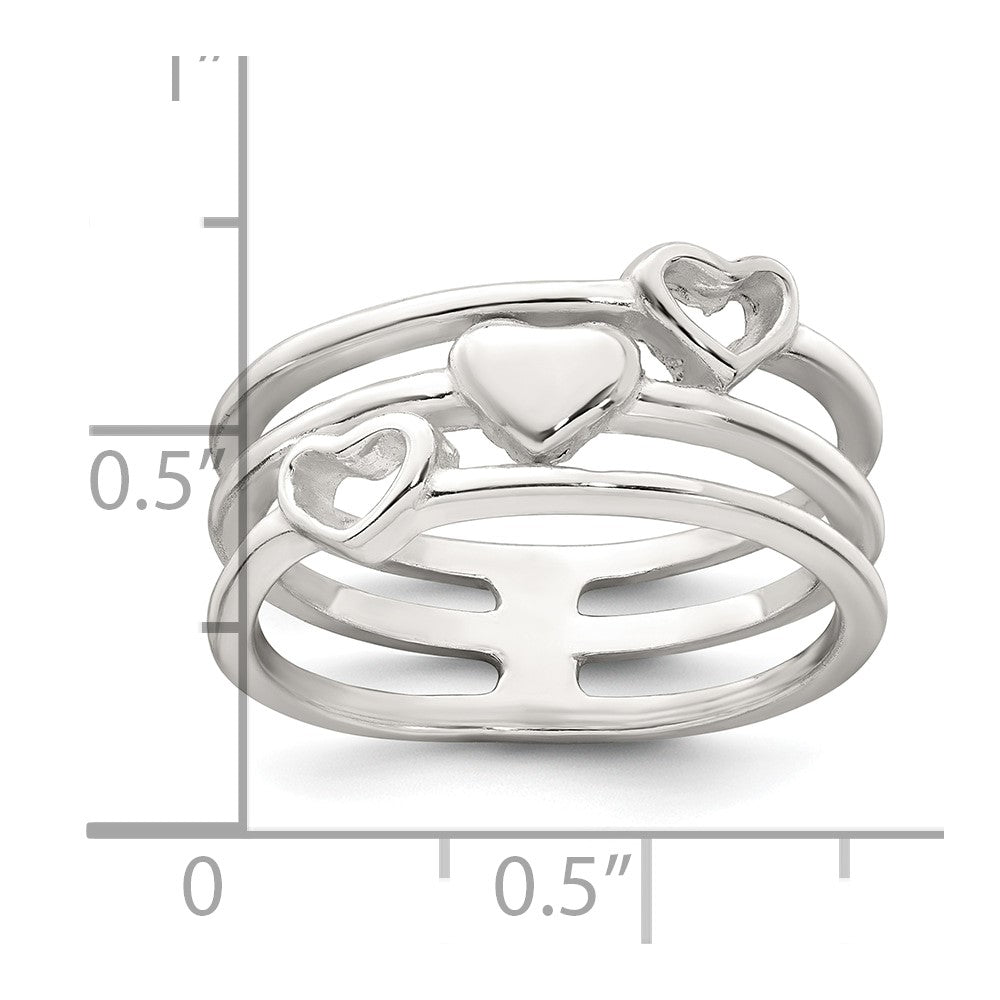 Sterling Silver Polished Hearts Three Band Size 8 Ring