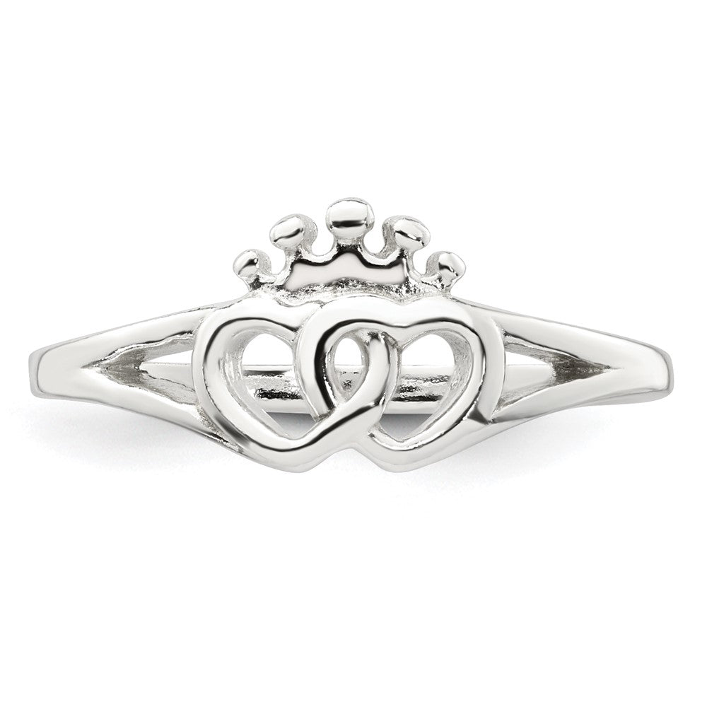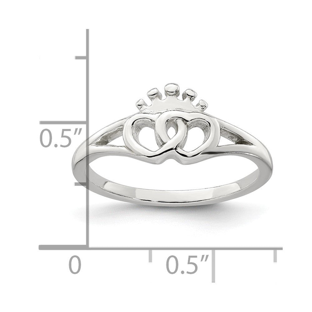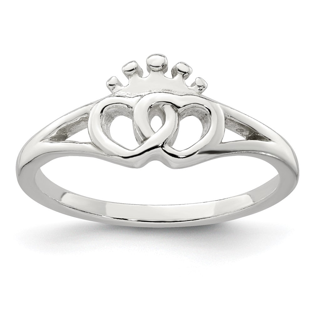 Sterling Silver Polished Interlocking Hearts With Crown Ring