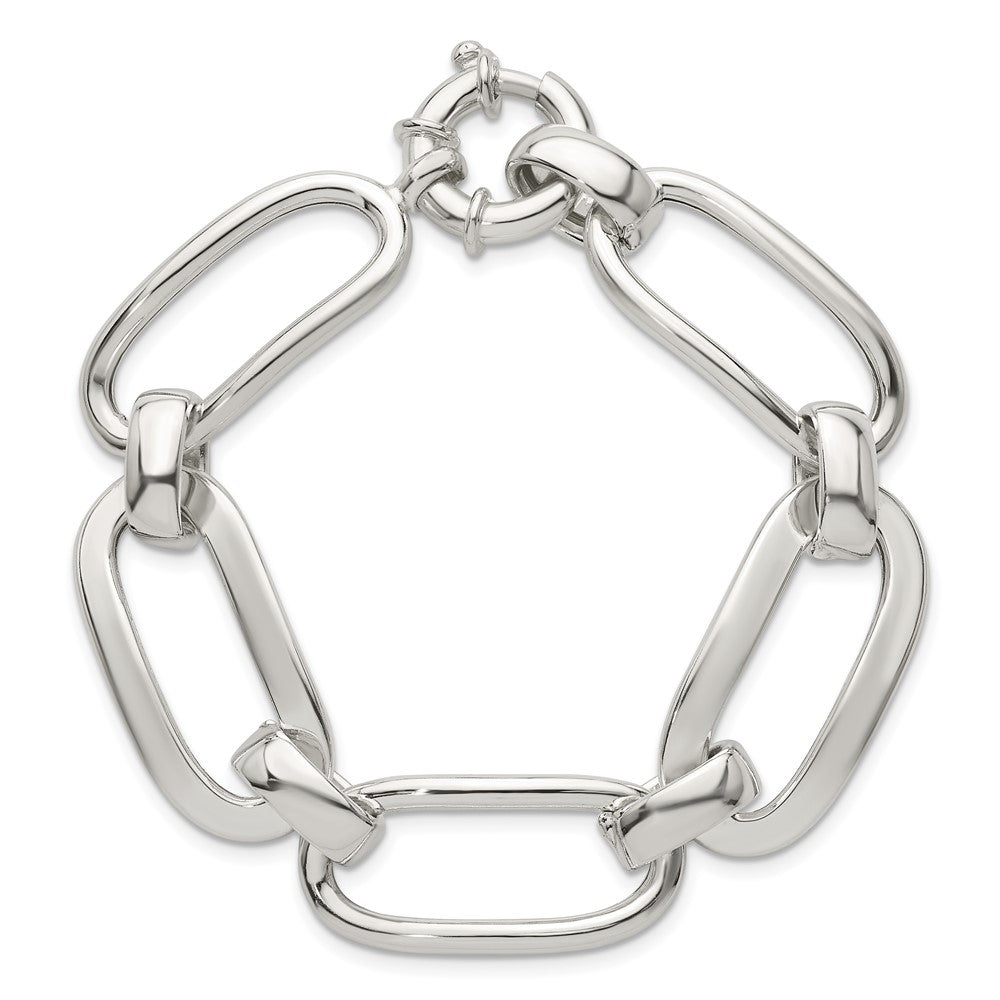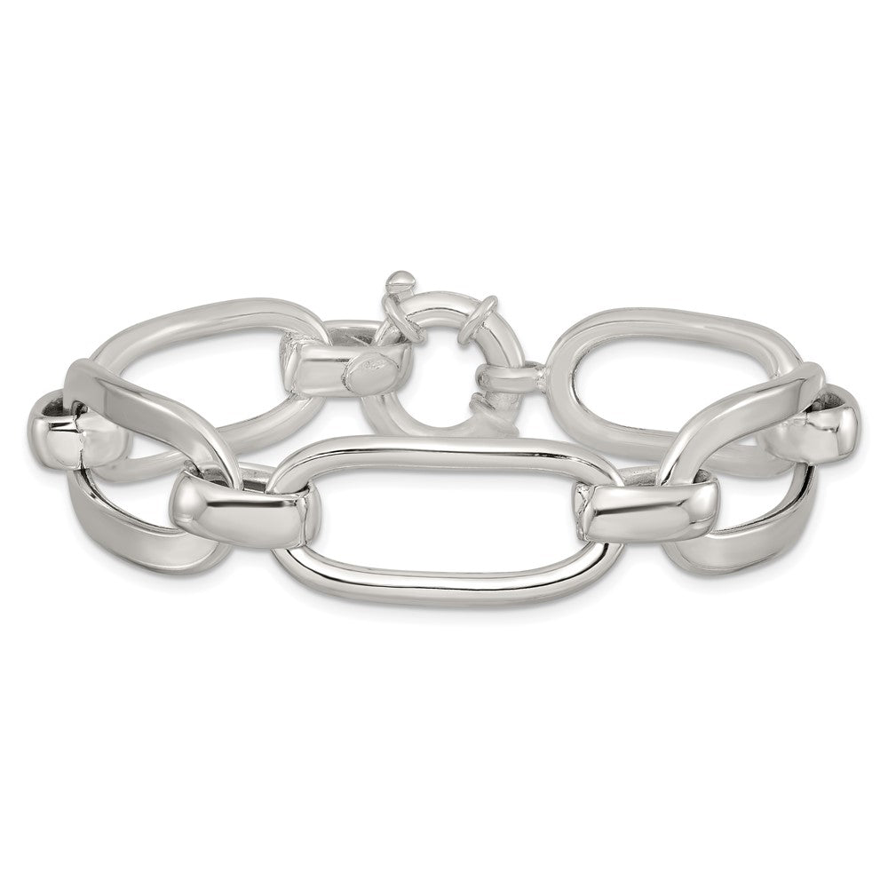 Sterling Silver Polished Long Oval and Round Link 7. Bracelet
