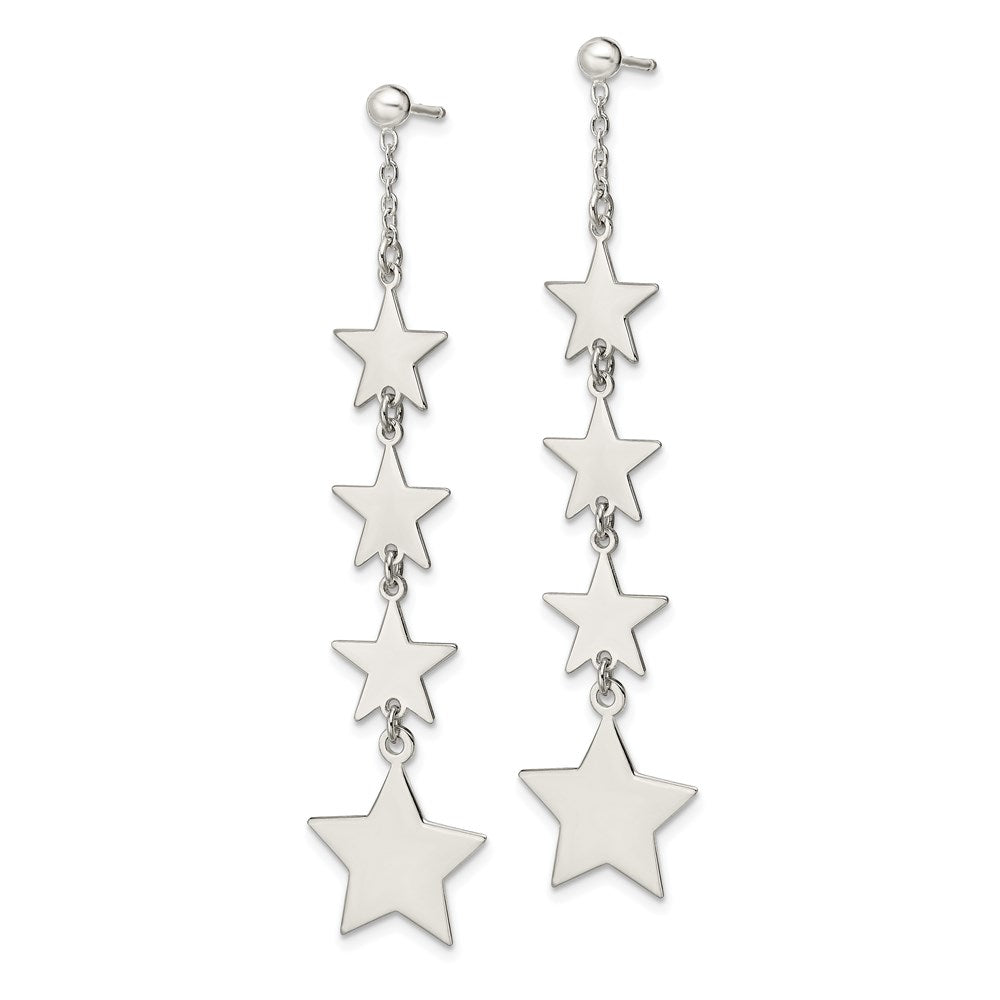 Sterling Silver Polished Mulitple Stars Drop and Dangle Post Earrings