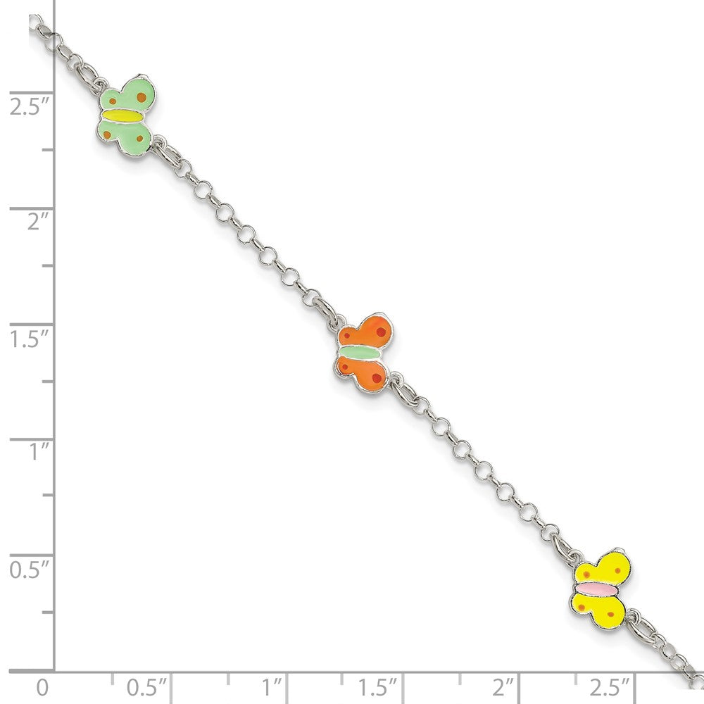 Sterling Silver Polished Multi-color Enamel Butterflies Children's Bracelet