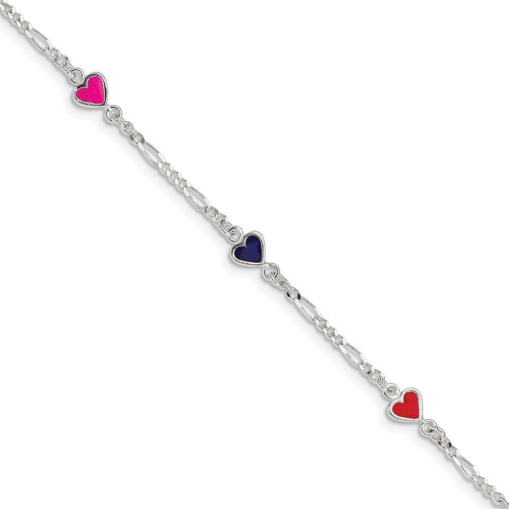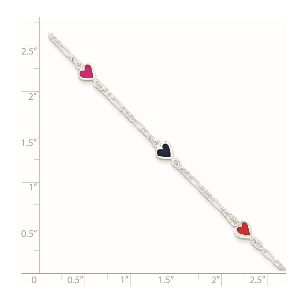 Sterling Silver Polished & Multi-color Enameled Hearts with Extension Children's Bracelet