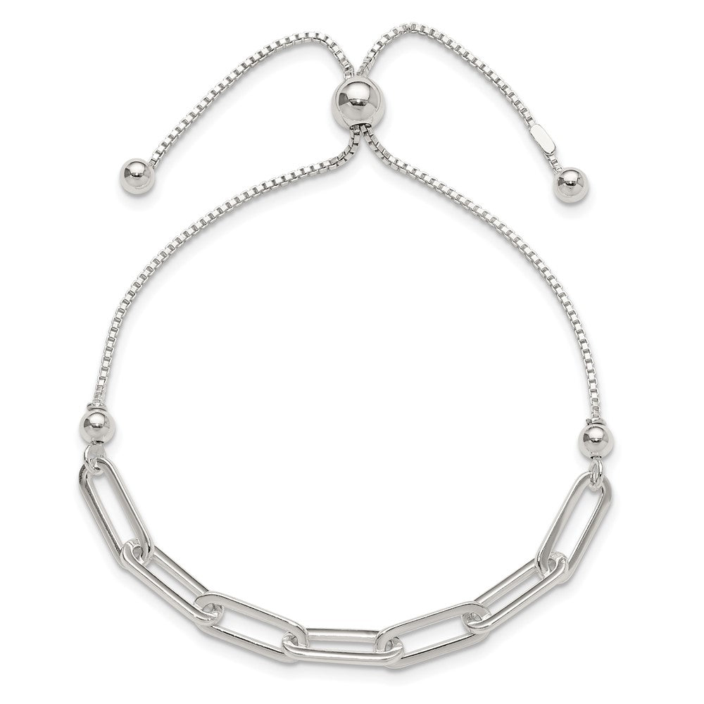 Sterling Silver Polished Paperclip Link Adjustable Bracelet
