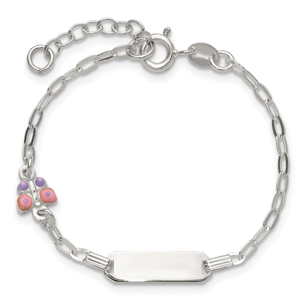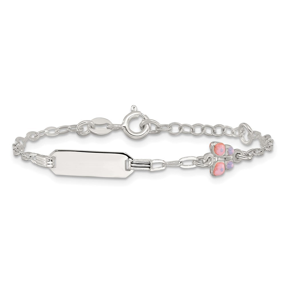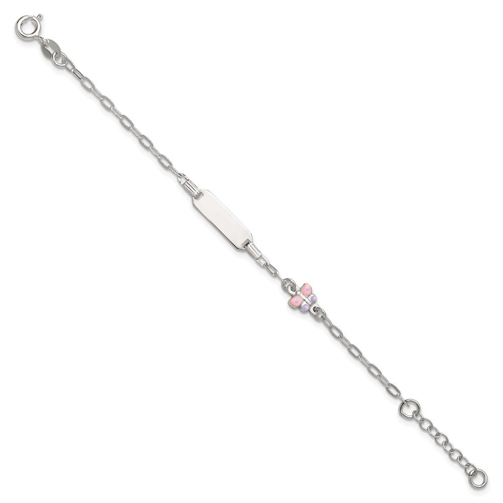 Sterling Silver Polished Pink and Purple Enameled Butterfly with extension Childrens ID Bracelet