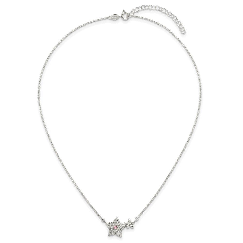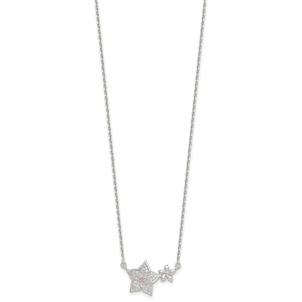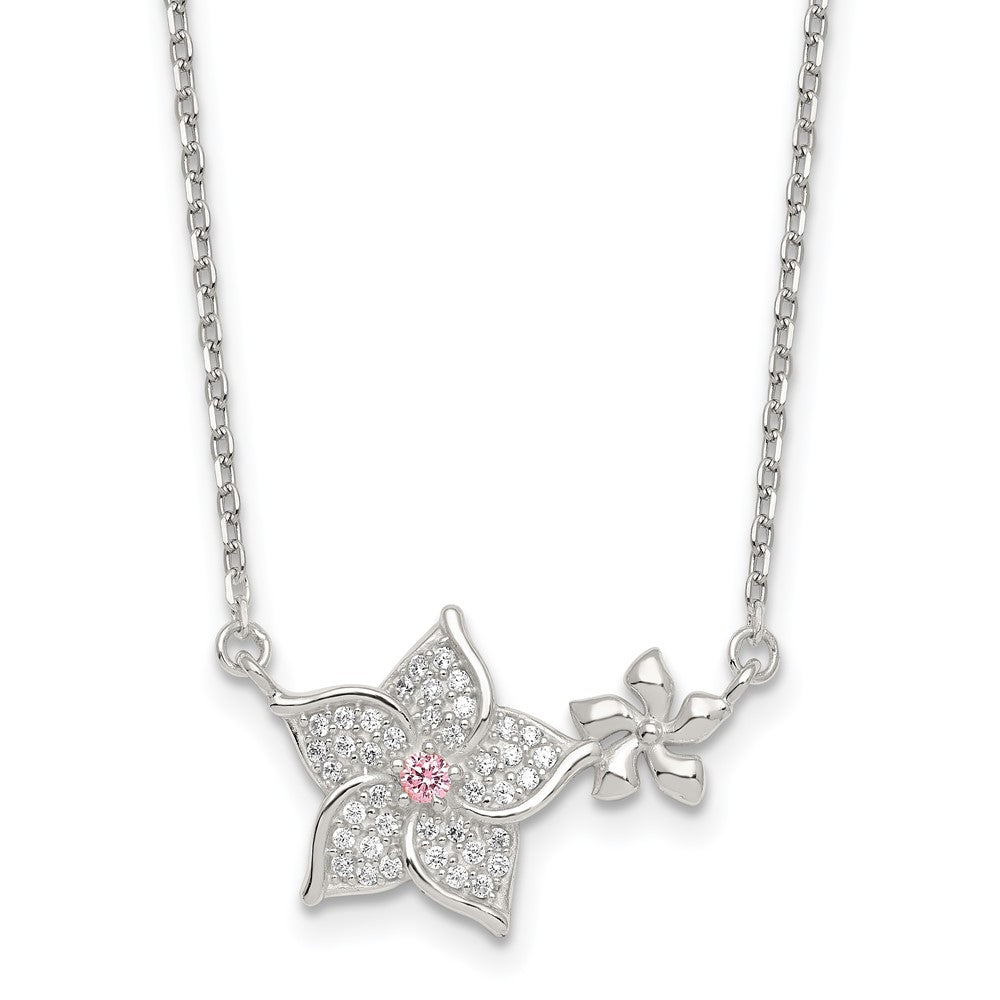 Sterling Silver Polished Pink and White CZ Flowers with Extension Necklace