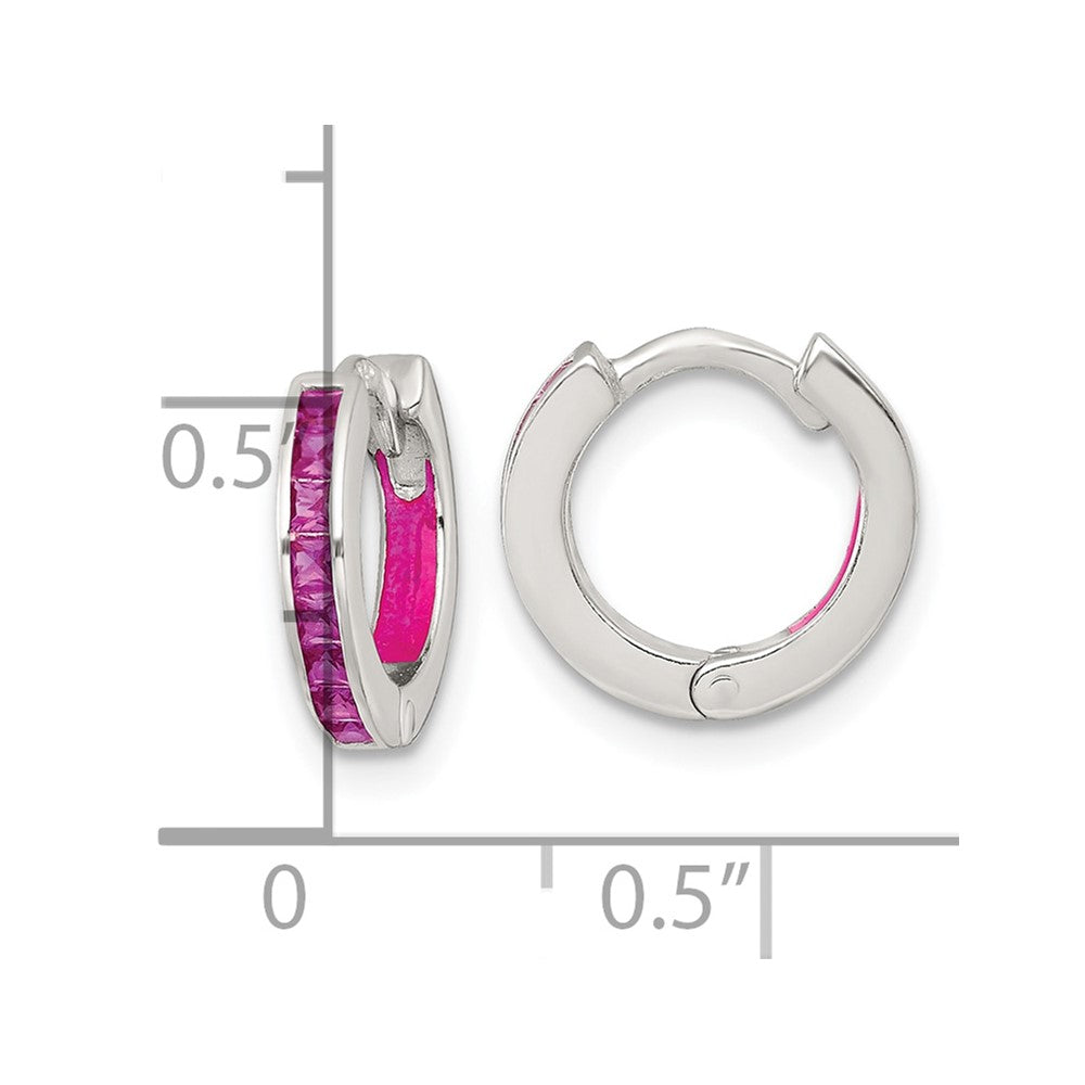 Sterling Silver Polished Pink CZ and Pink Enamel In and Out Hinged Round Hoop Earrings