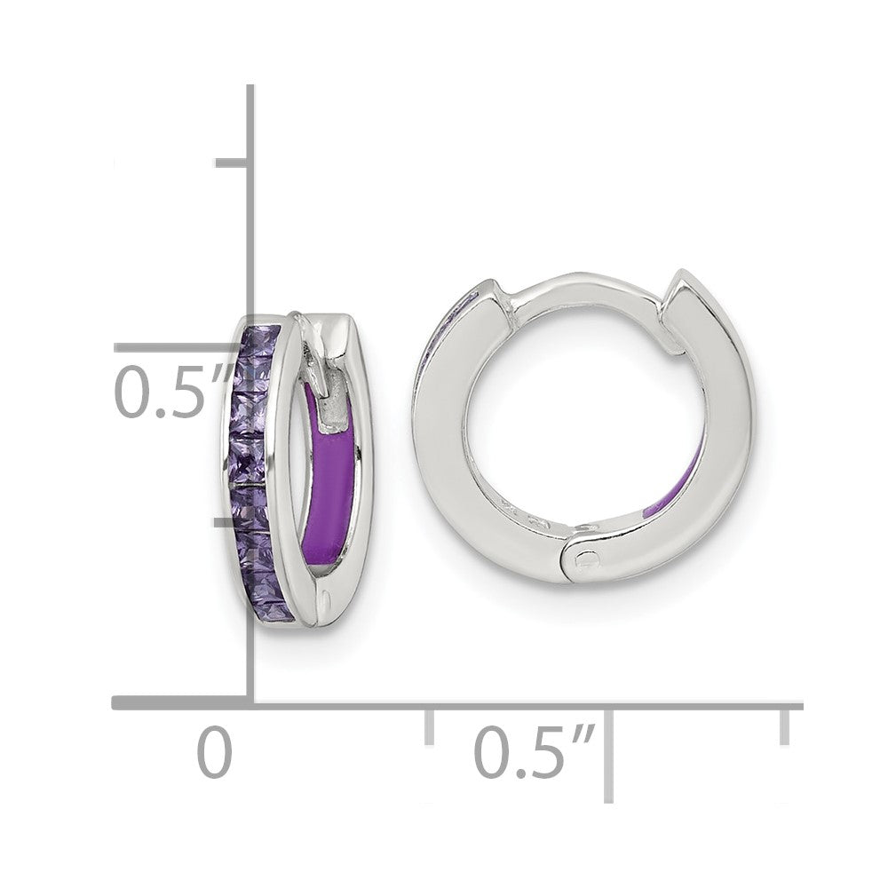 Sterling Silver Polished Purple CZ and Purple Enamel In and Out Hinged Round Hoop Earrings