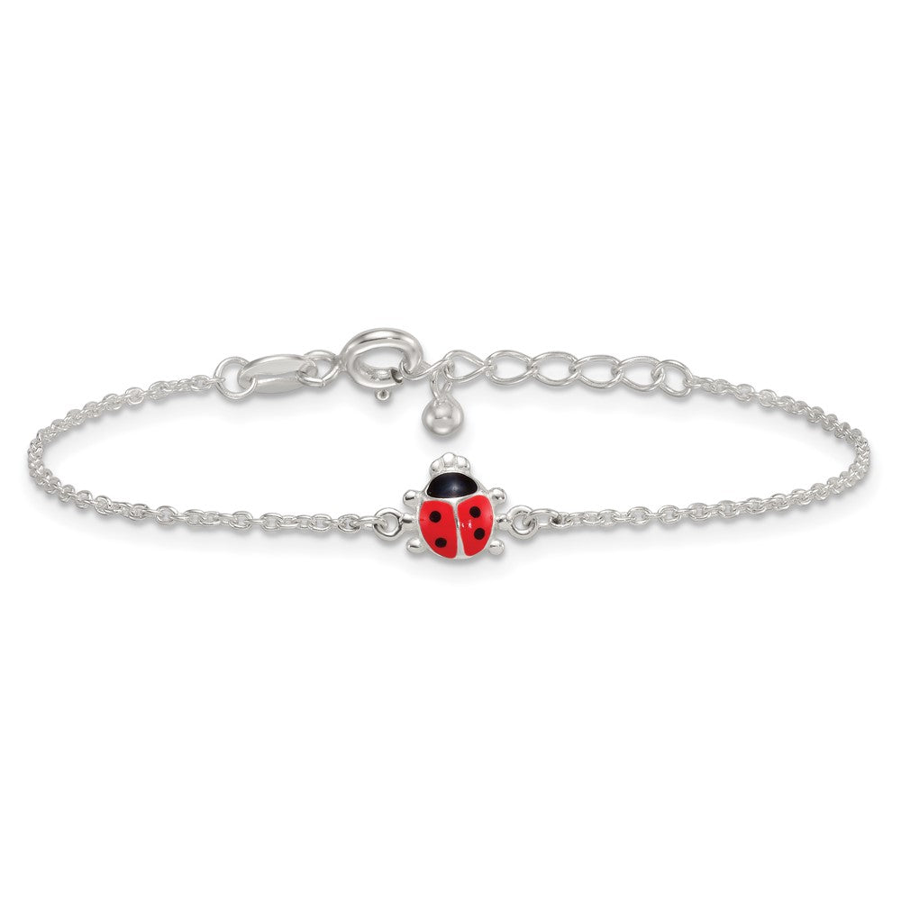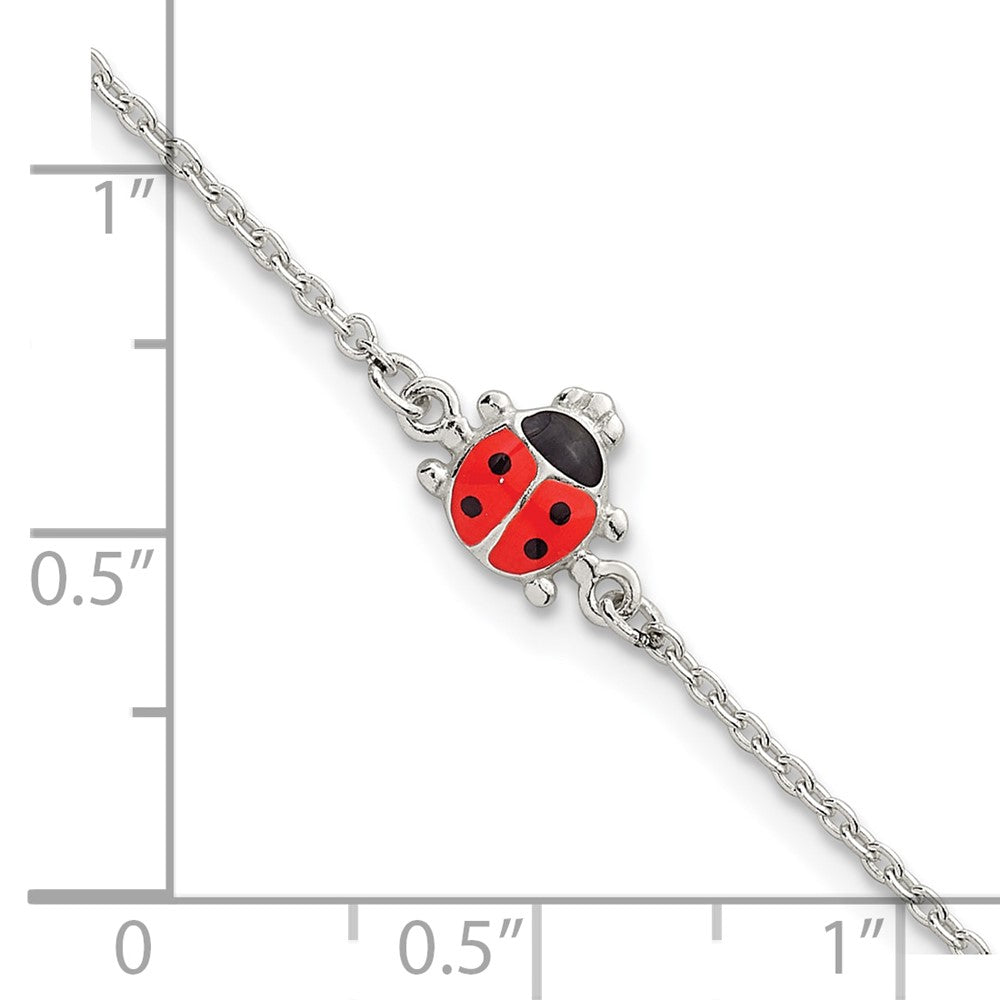 Sterling Silver Polished Red and Black Enameled Ladybug Childrens 5. with Extension Bracelet