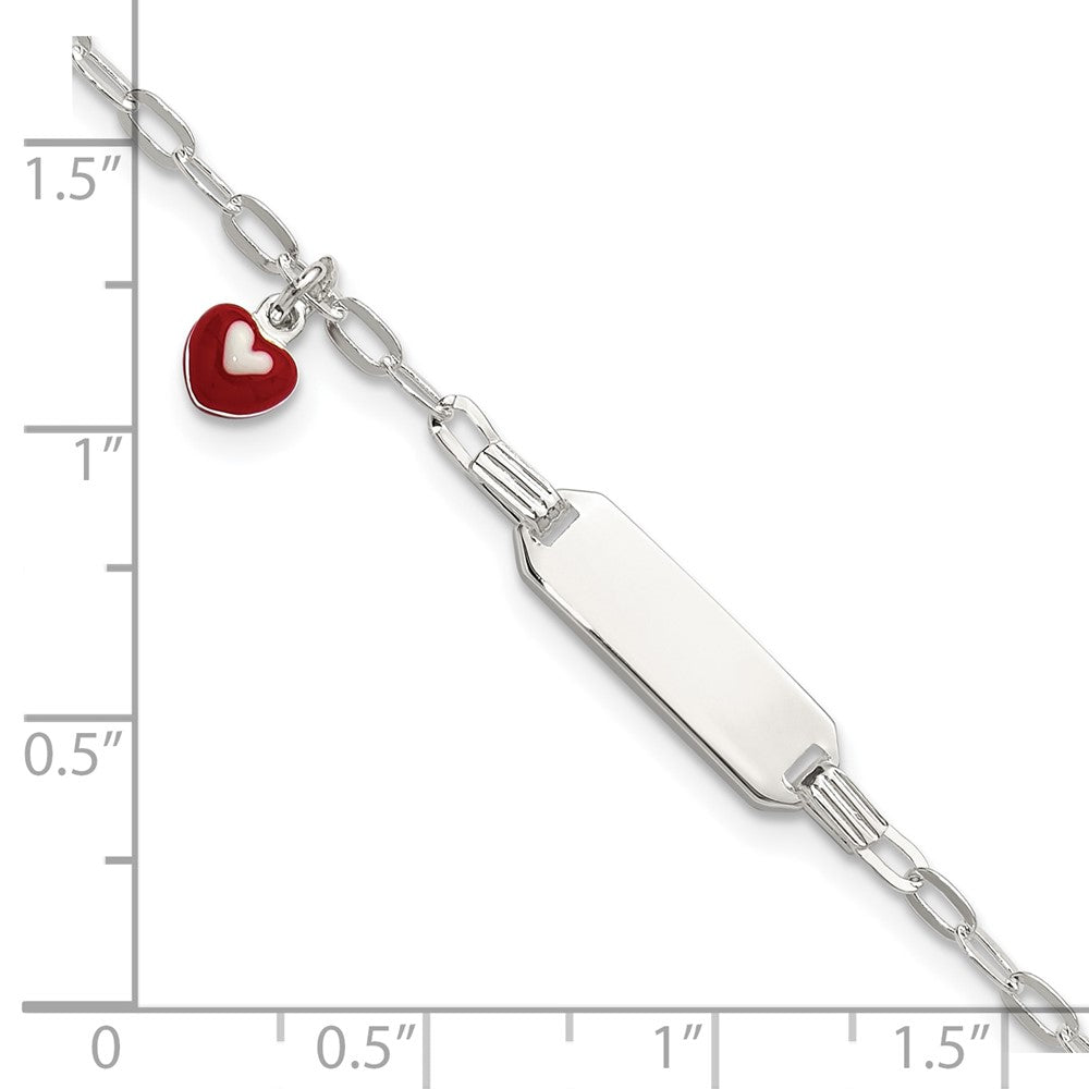 Sterling Silver Polished Red and White Enameled Heart Charm with extension Childrens ID Bracelet