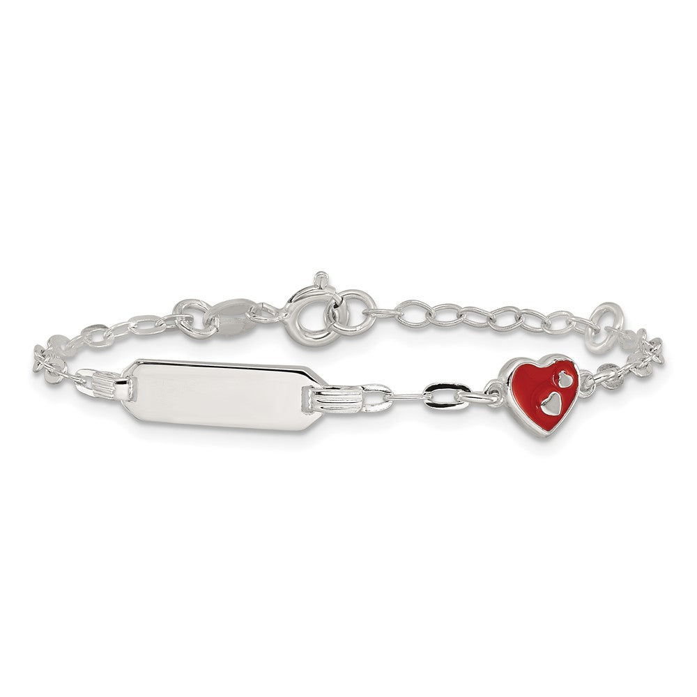 Sterling Silver Polished Red and White Enameled Heart with extension Childrens ID Bracelet