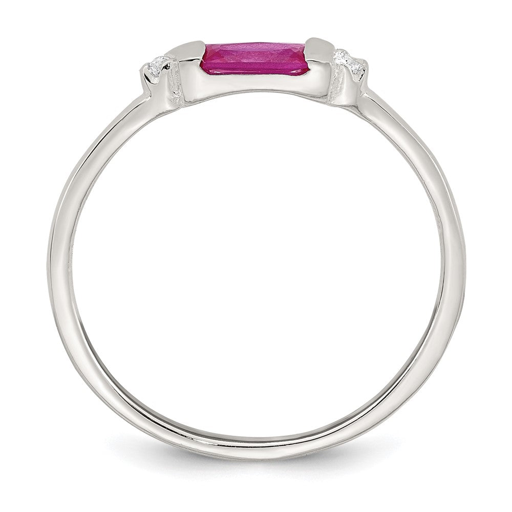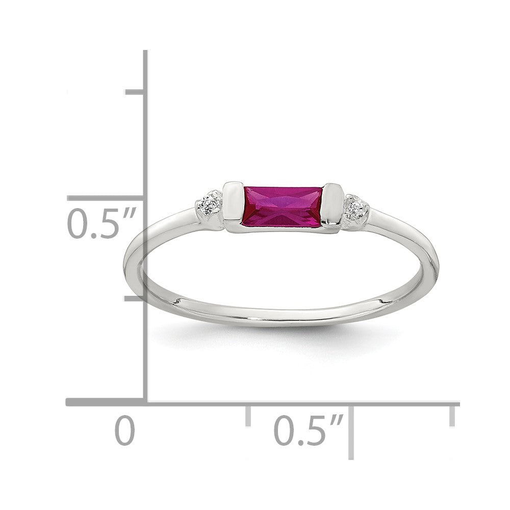 Sterling Silver Polished Red and White Rectangular CZ Size 7 Ring