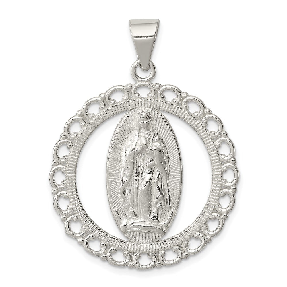 Sterling Silver Polished Religious Ruffled Circle Pendant