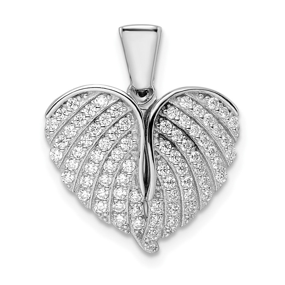 Sterling Silver Polished Rhodium-plated CZ Opening Wings & Heart Pendant