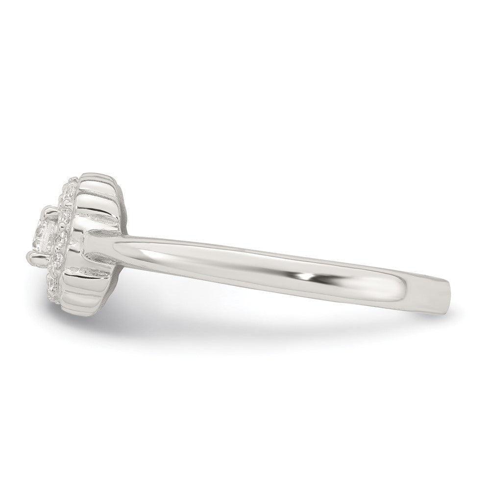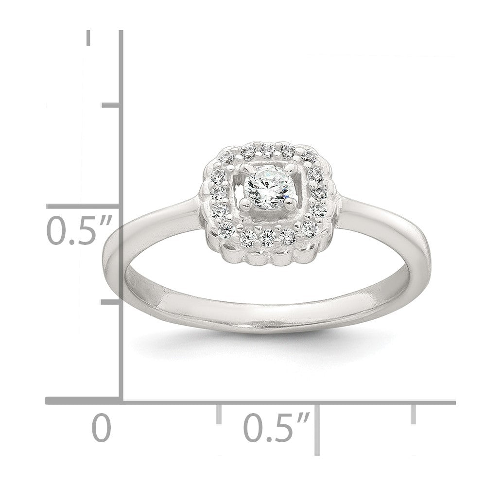 Sterling Silver Polished Round White CZ Cushion Halo Size 6 Ring