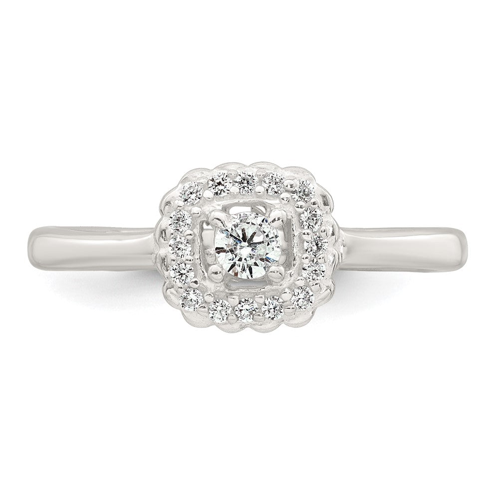 Sterling Silver Polished Round White CZ Cushion Halo Size 8 Ring