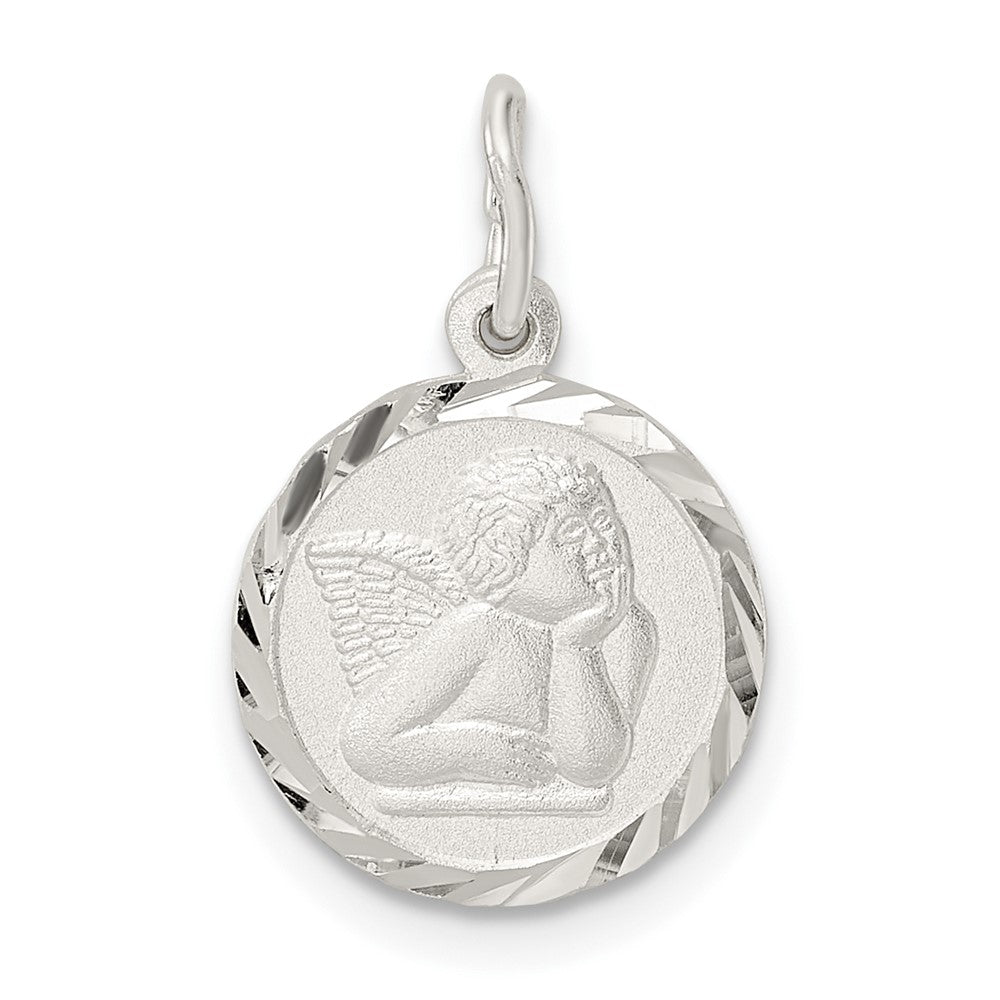 Sterling Silver Polished Satin and D/C Cherub Circle Charm