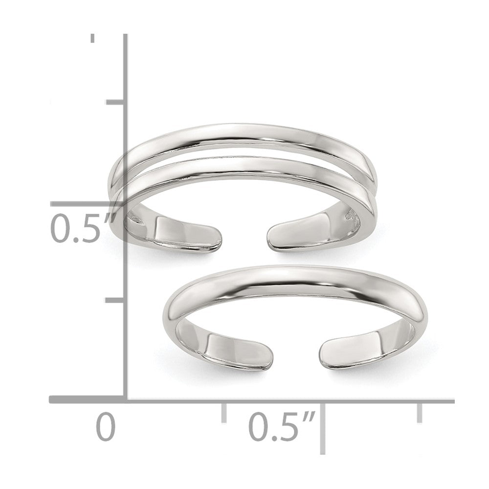 Sterling Silver Polished Set of 2 Toe Rings