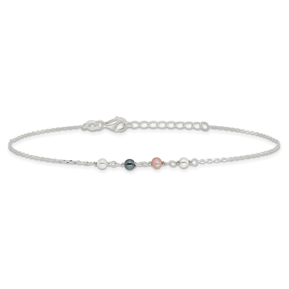Sterling Silver Polished Syn. Pink, Black, White Pearl 9in Plus 1in ext