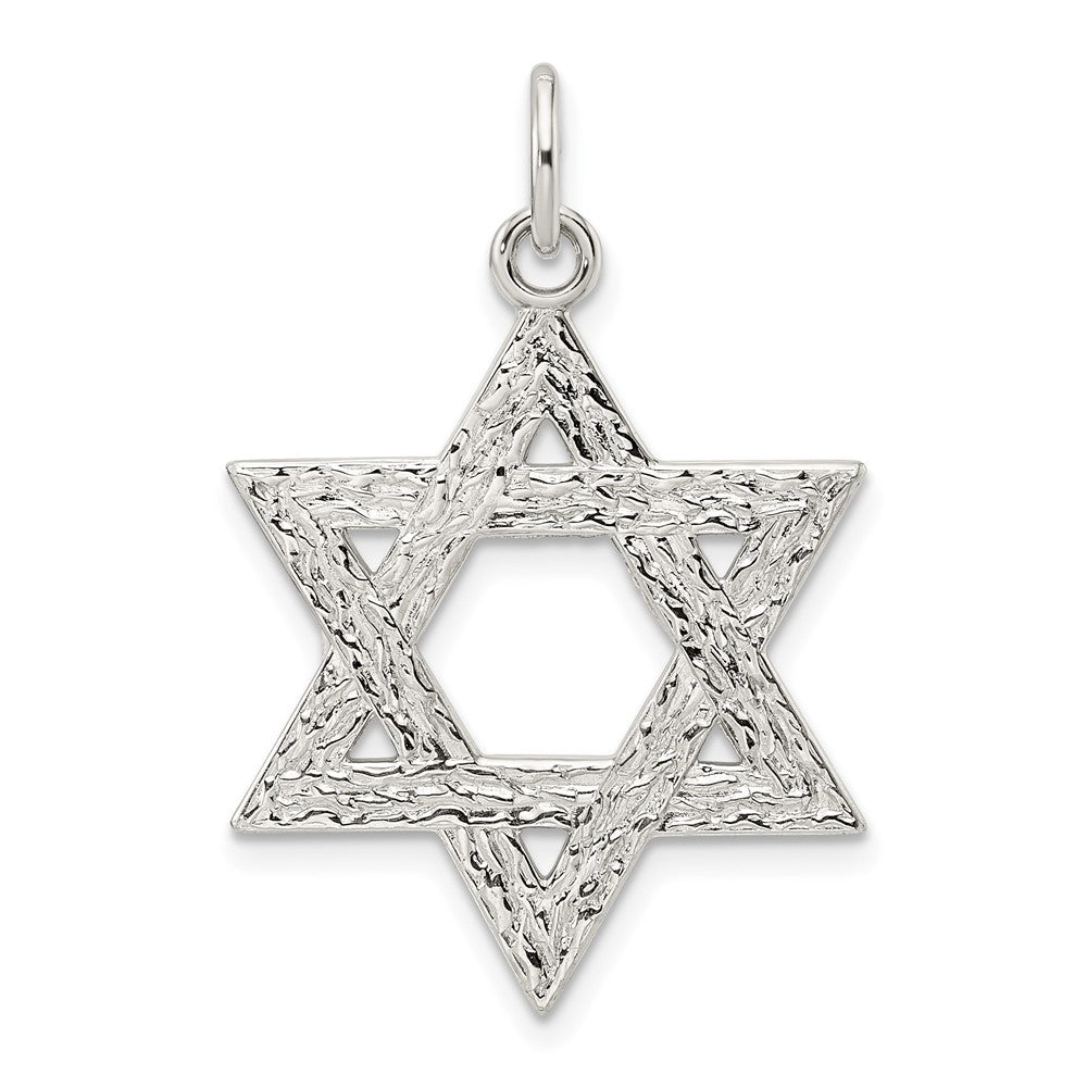 Sterling Silver Polished Textured Solid Star of David Pendant