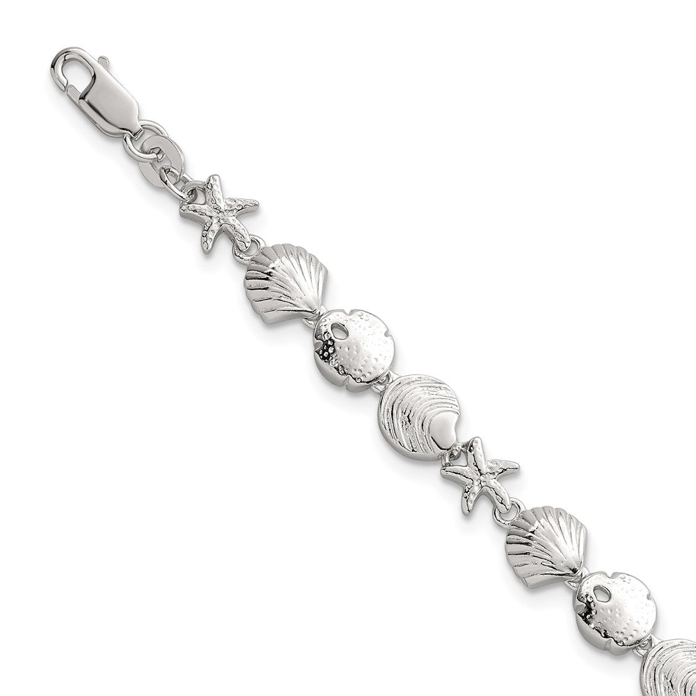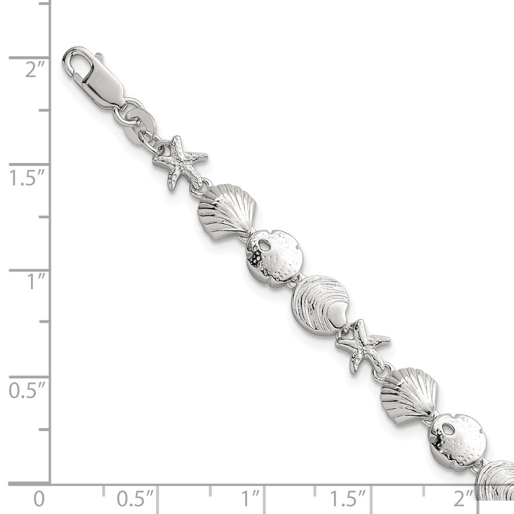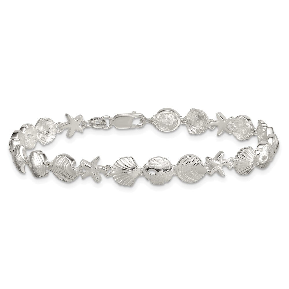 Sterling Silver Polished Textured Starfish, Sand Dollar, and Sea Shell 7. Bracelet