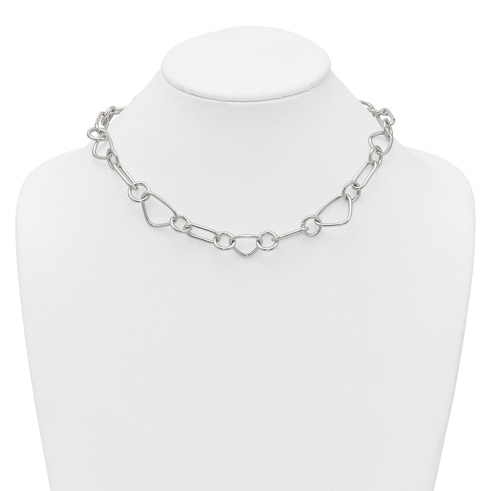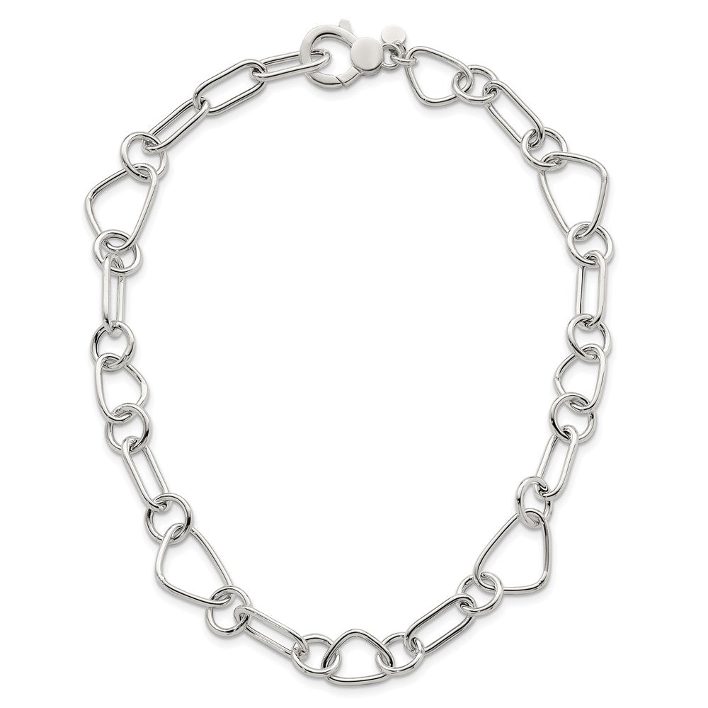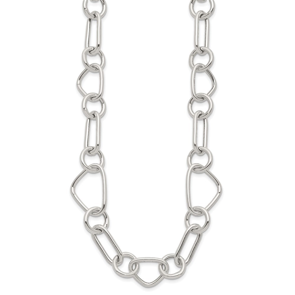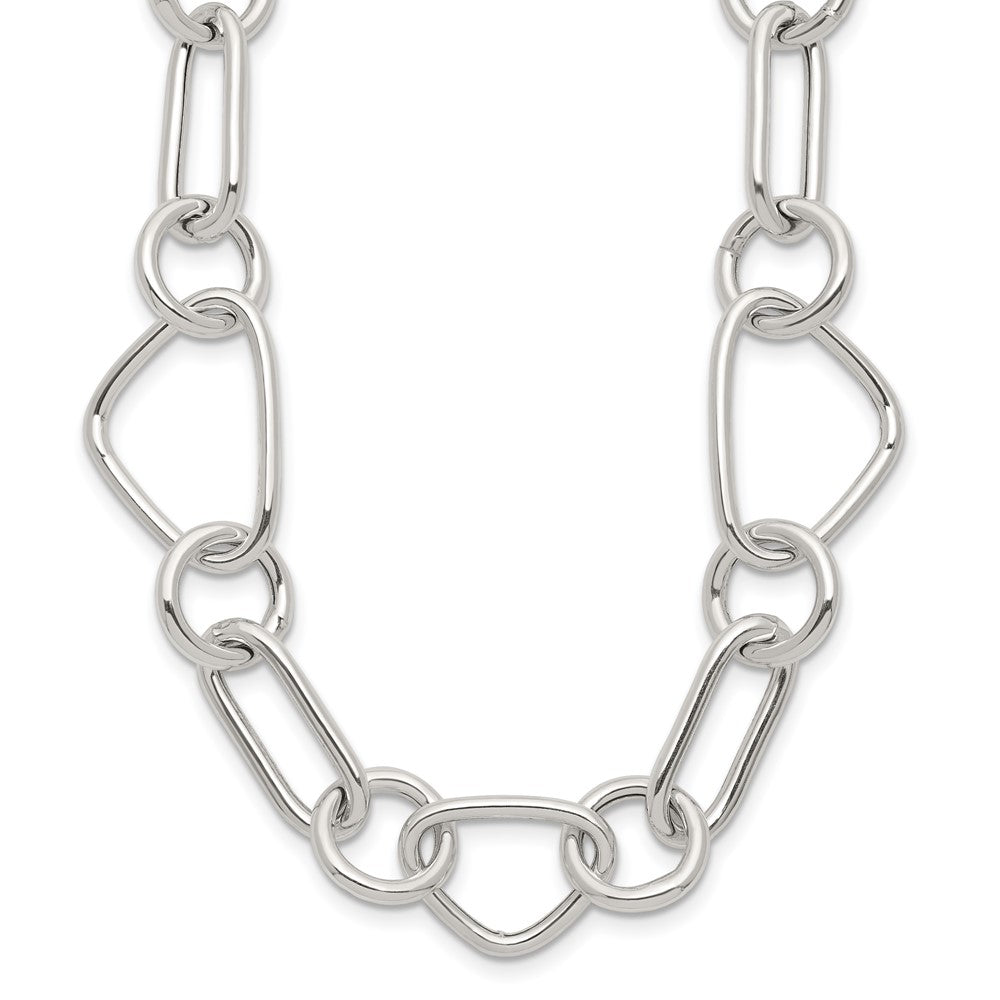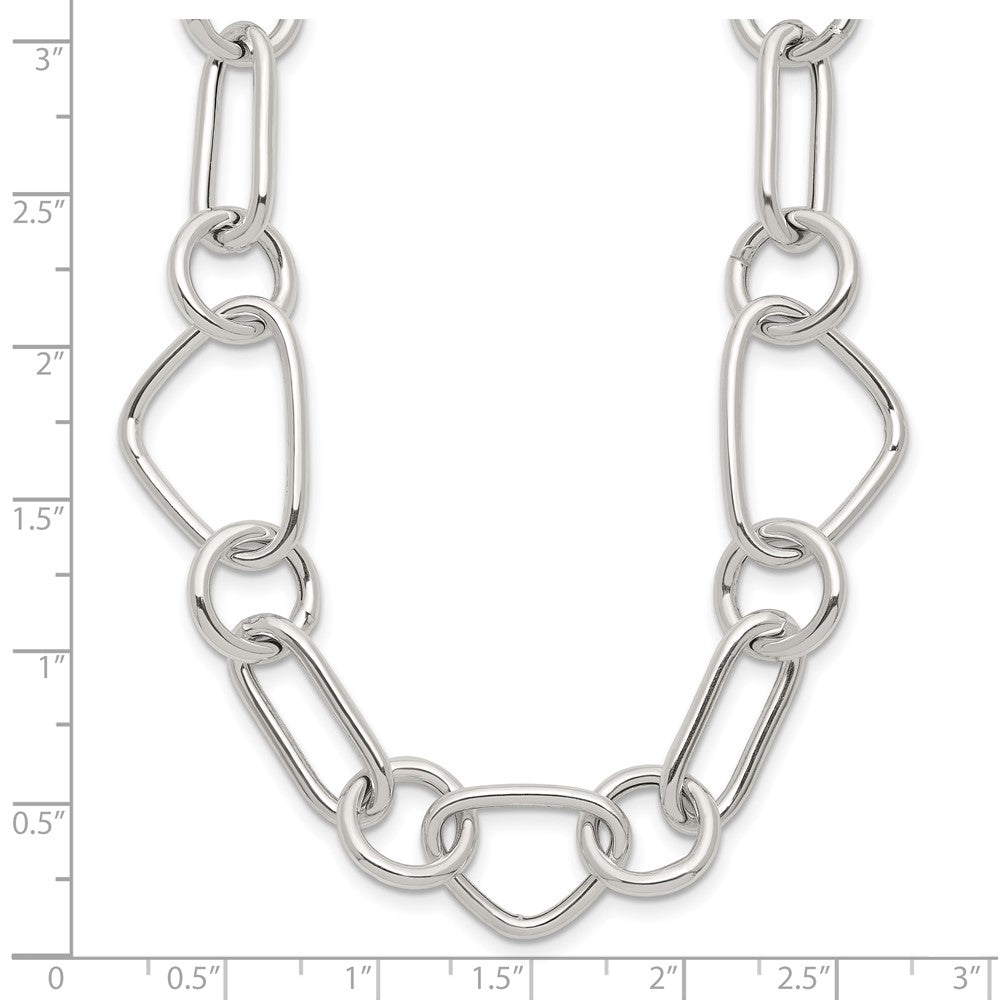 Sterling Silver Polished Triangle Round and Oval Link 17. Necklace