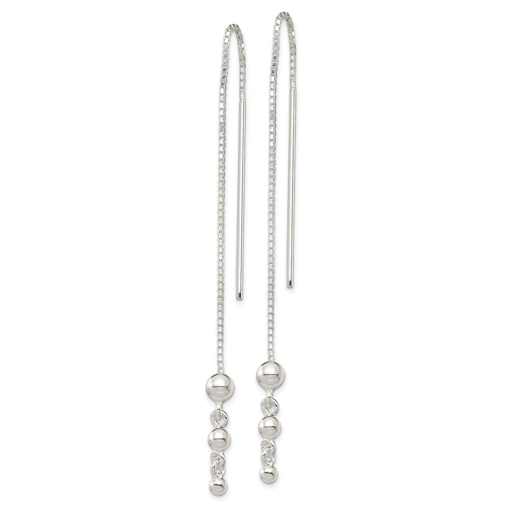 Sterling Silver Polished Triple Graduated Ball Threader Earrings