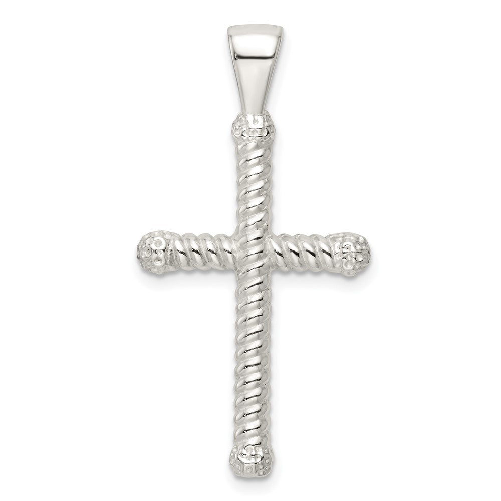Sterling Silver Polished Twisted Hollow Latin Cross Pendant
