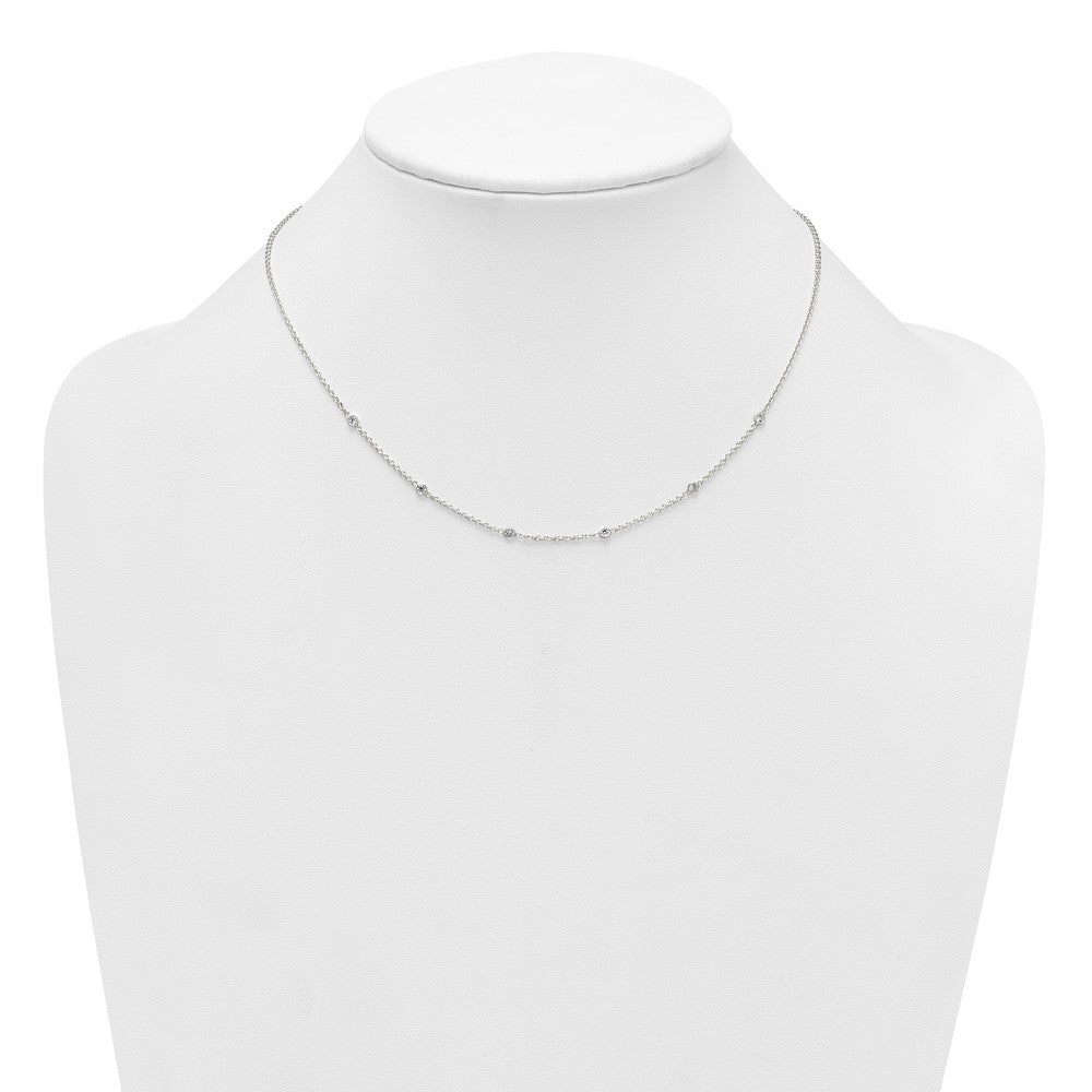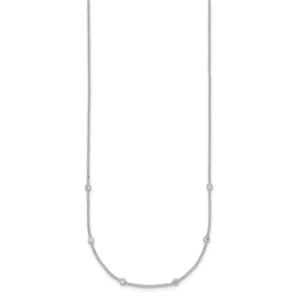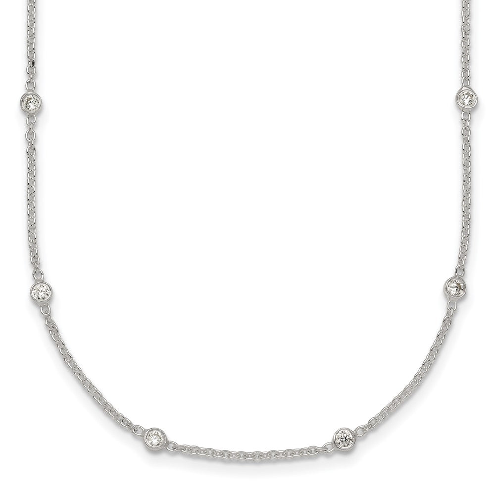 Sterling Silver Polished White CZ 6-Station 16.5 with Extension Necklace