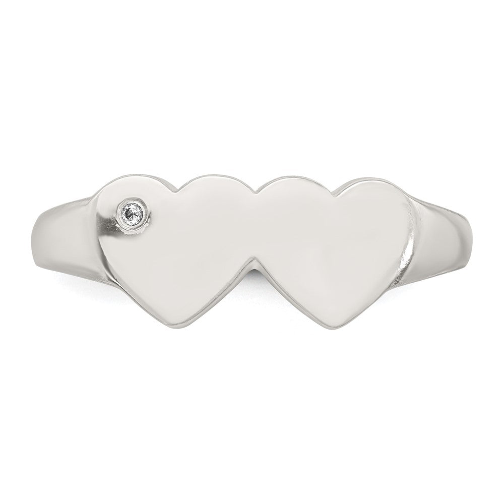 Sterling Silver Polished White CZ Double Heart Size 6 Signet Ring