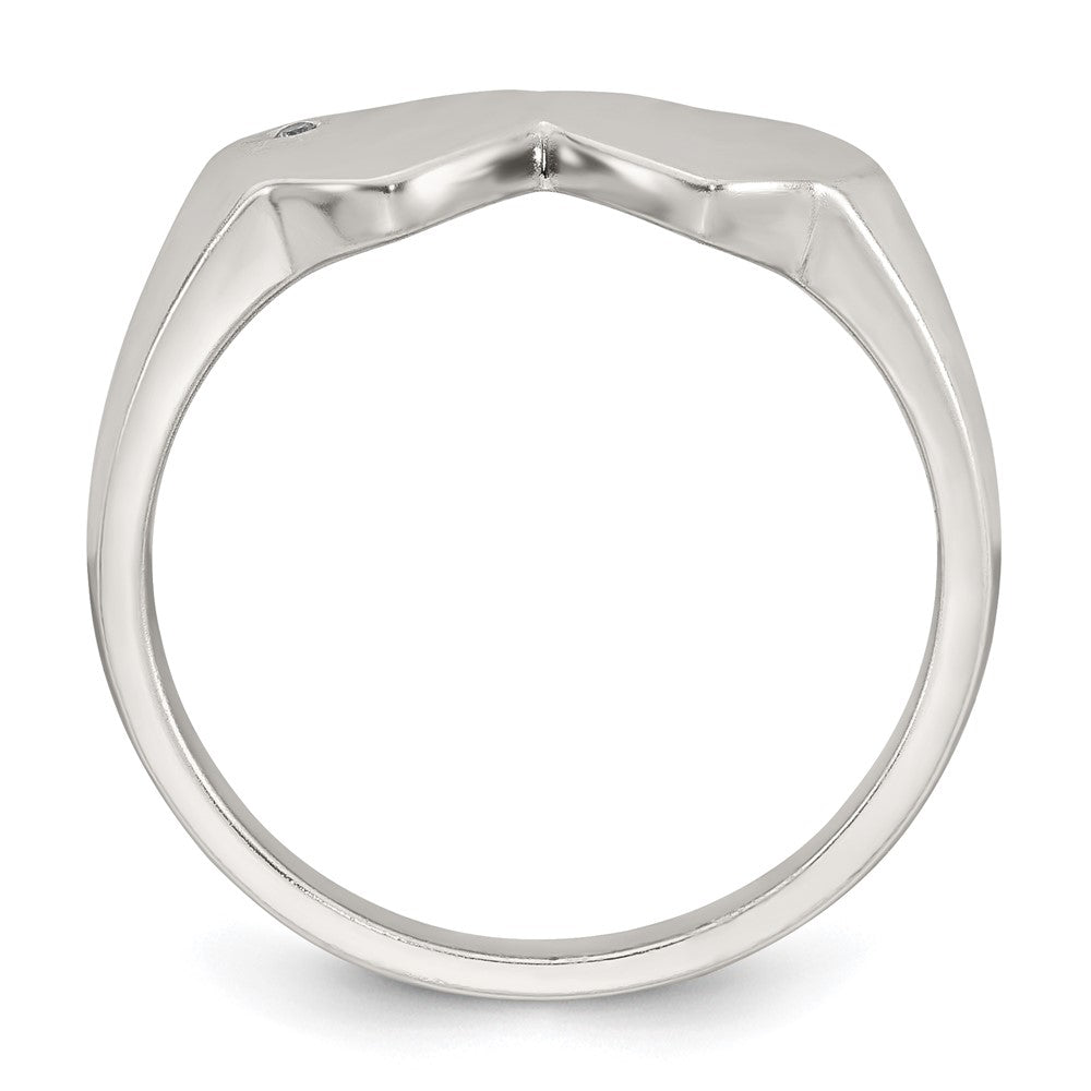 Sterling Silver Polished White CZ Double Heart Size 7 Signet Ring