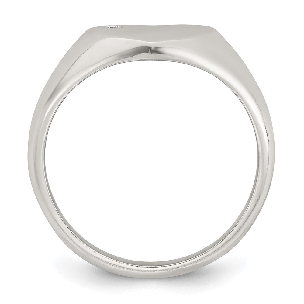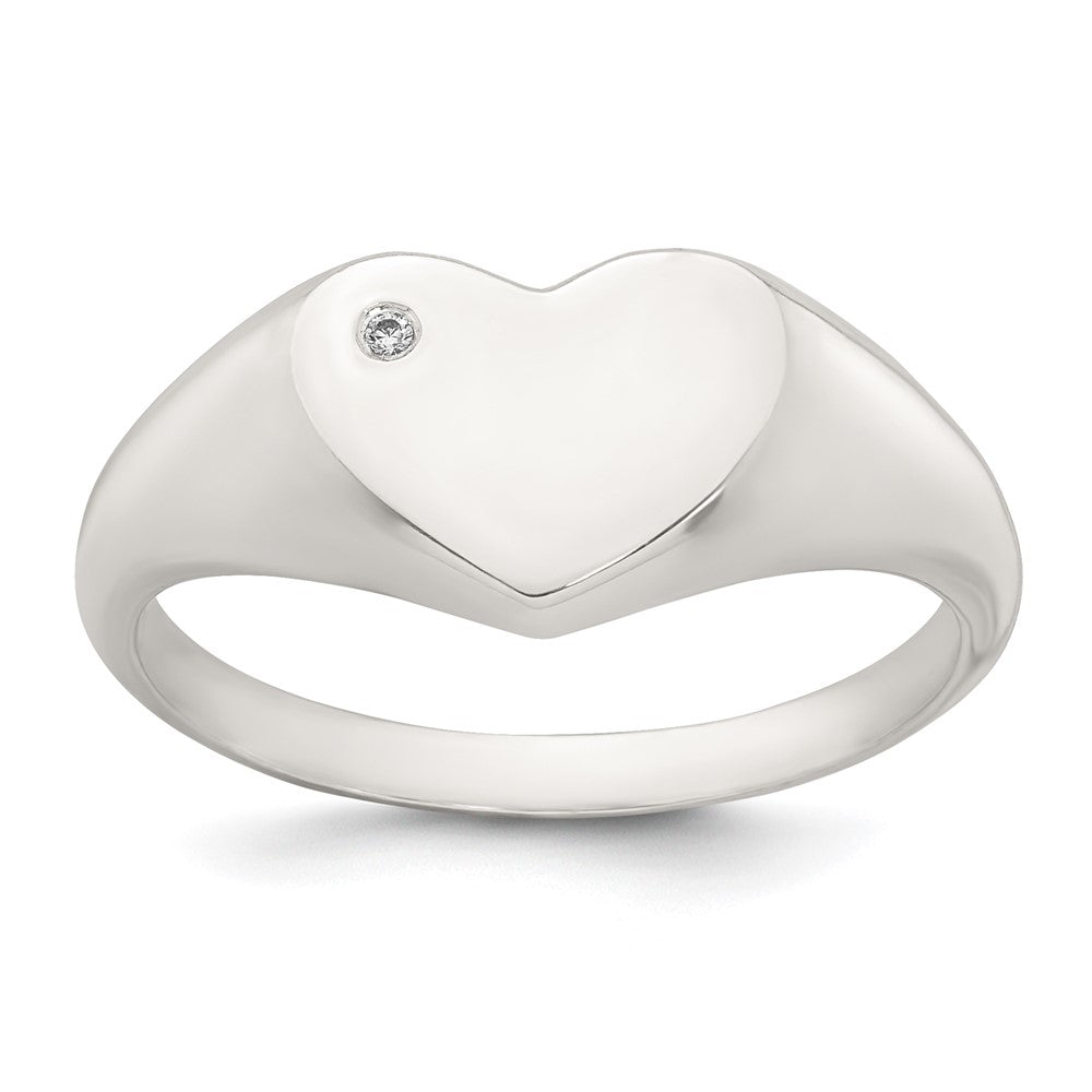 Sterling Silver Polished White CZ Heart Size 7 Signet Ring